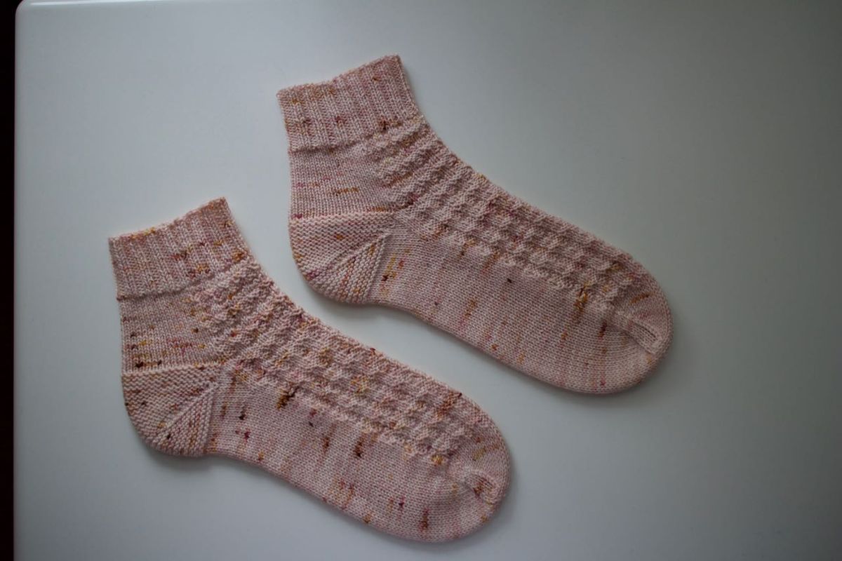 Yorkville socks for my sister-in-law. I loved the texture of this knit, and it was my first time doing a German short row heel in garter. I typically follow a heel and gusset construction, if I'm knitting socks for myself or my mom, since we both have high arches. But these were so fun to knit, and it was nice to use a different construction method!