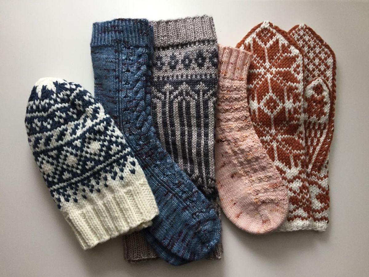 - Baby mitten socks (five pairs for friends with new babies, not all photographed)