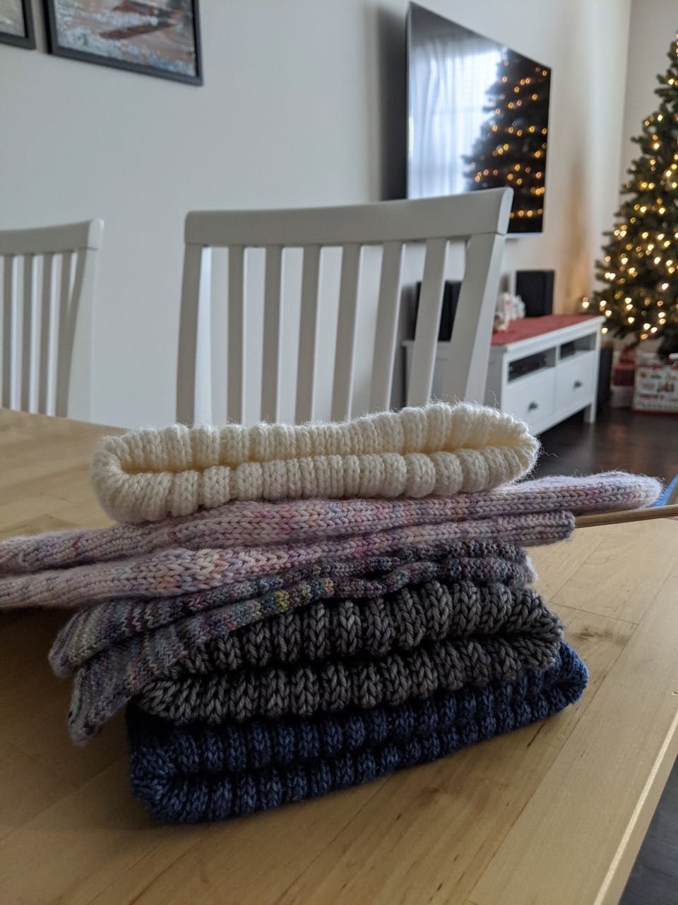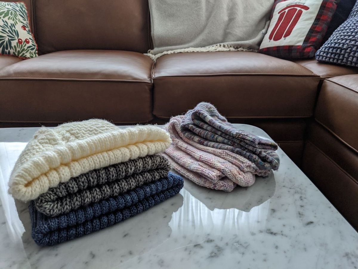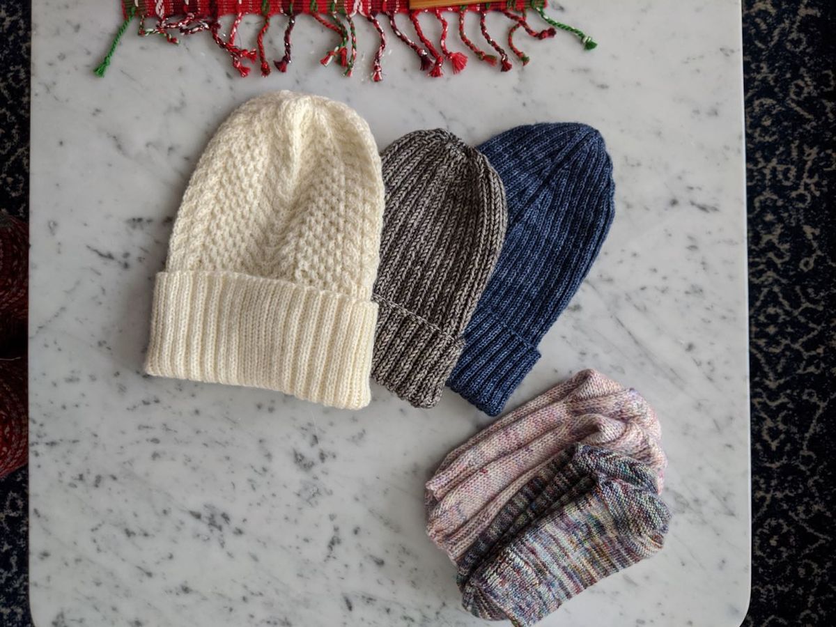 And then, there are the secret Christmas knits that I worked on, from September to December. Most of the recipients read the blog in some capacity, so I haven't mentioned their gifts here on the blog previously. Now that everything has been gifted, I provided a brief recap of each item, with more detail on the (linked) entry on my Ravelry: