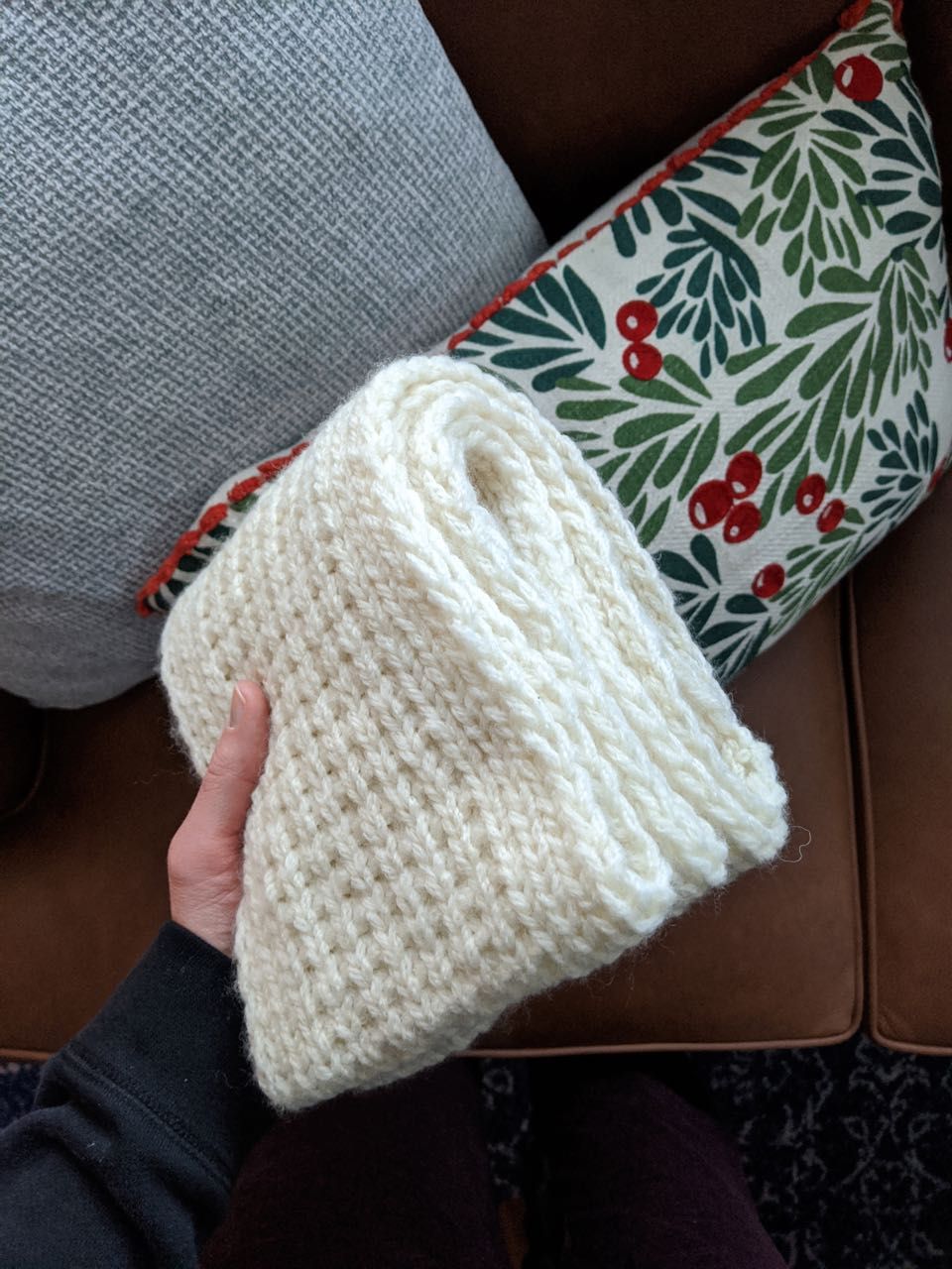 The Tolovana cowl, knit for my mother-in-law, Karen. I used the same yarn that I used for my Yeva shawl, and it is so soft. The pattern is written for aran weight, but I modified the stitch count a bit so I could use this bulky yarn, and I knit it a bit shorter so that it had a more snuggly fit.