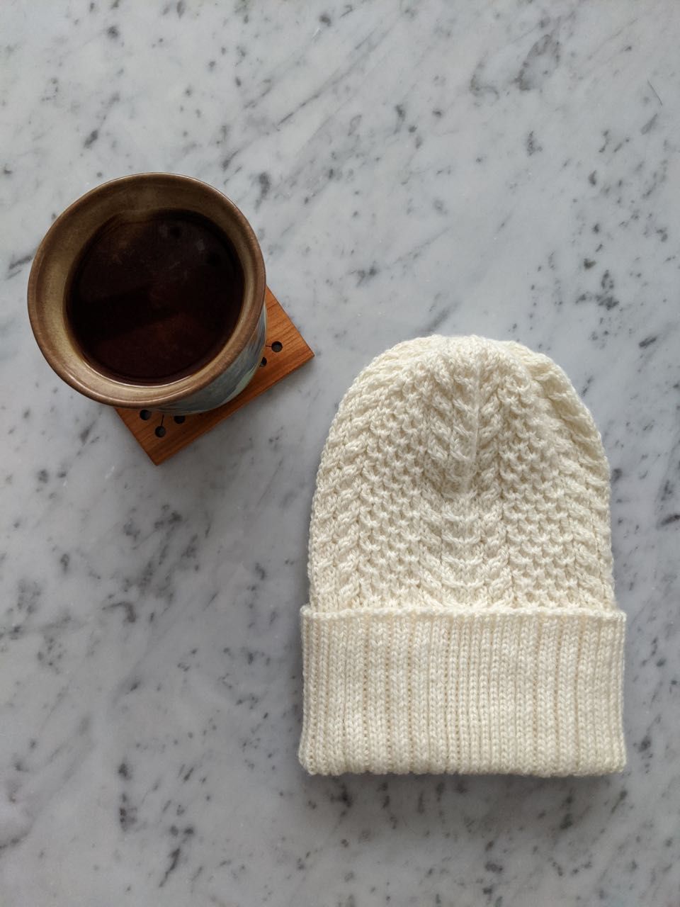 (Another) More honey hat, knit for my mom out of ivory yarn. This pattern is fun and is texturally the most interesting pattern I've ever knit, I think! She tried on my rust-colored version last year and liked the fit, and so I knit one for her.