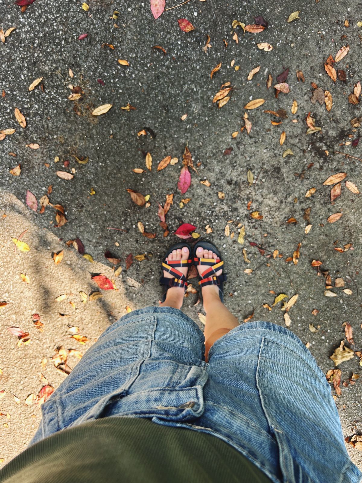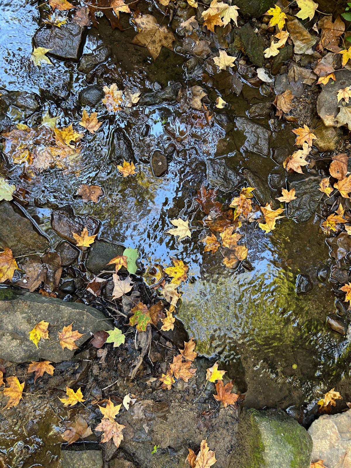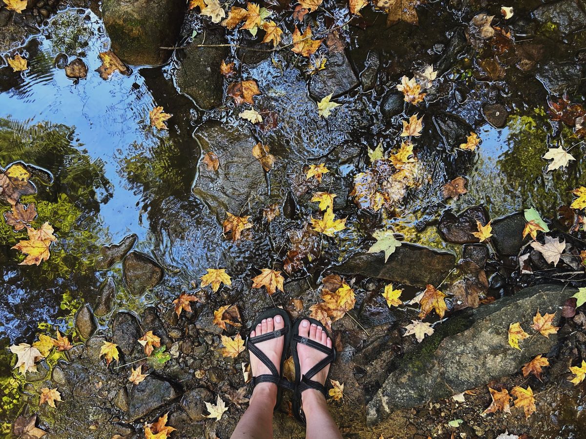 Once we got the campsite and tent set up, we explored the campground a bit. This campground had pretty nice (hot!) showers and the site we chose was a convenient distance to the bathroom, but not too close. The trees were showing just a hint of color, bits of red and gold sprinkled on the ground, like confetti.