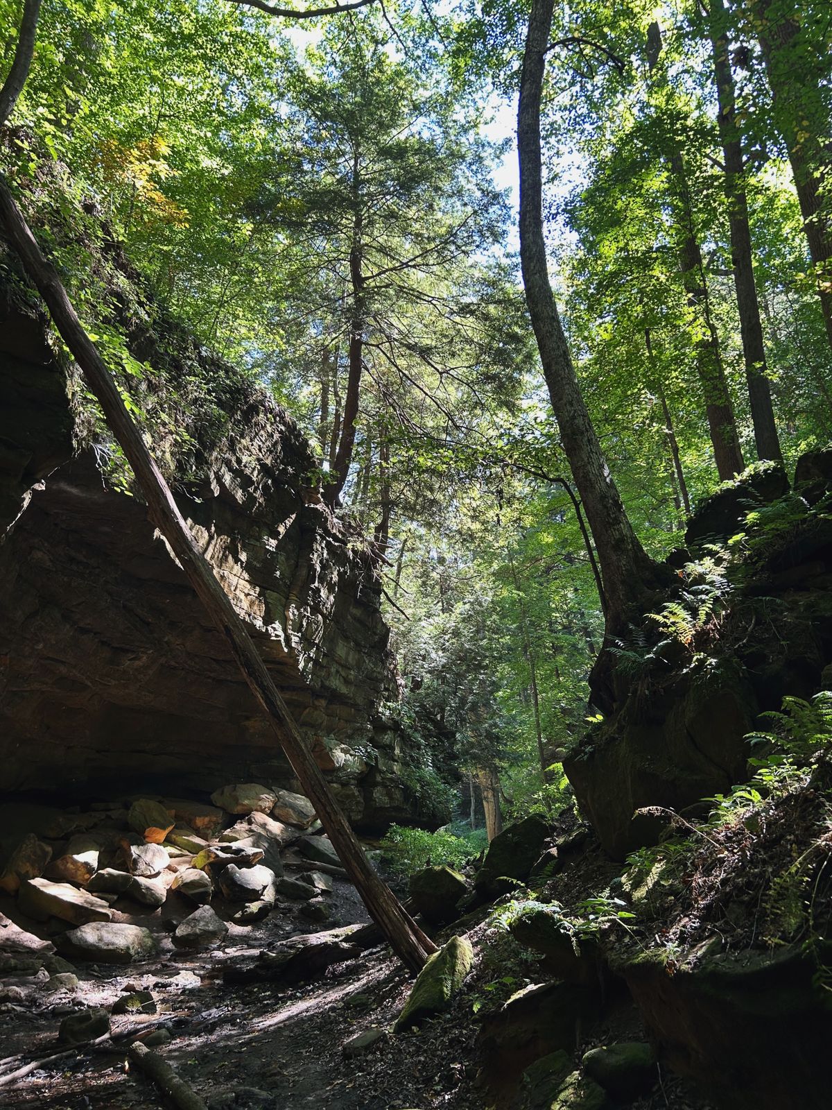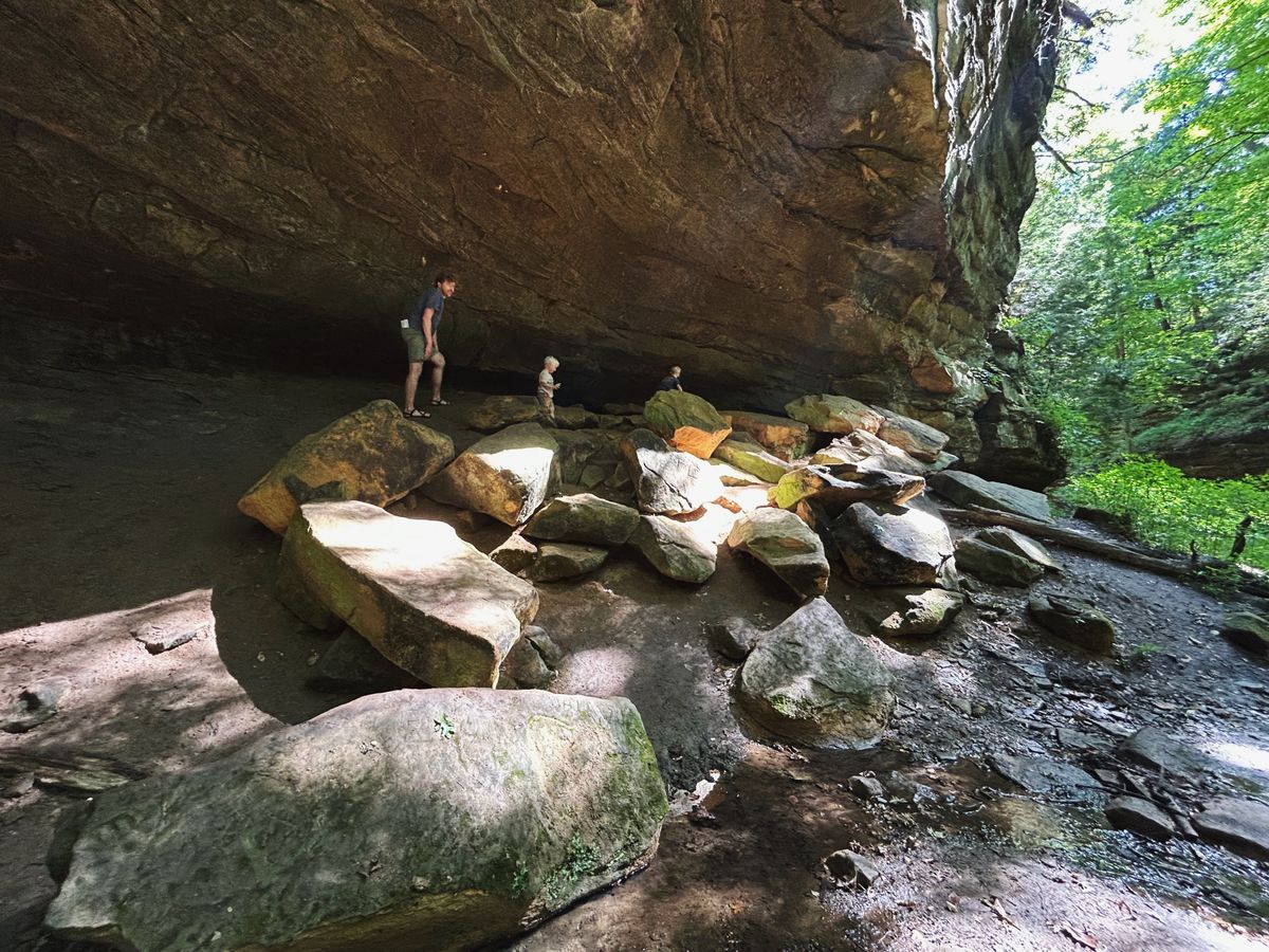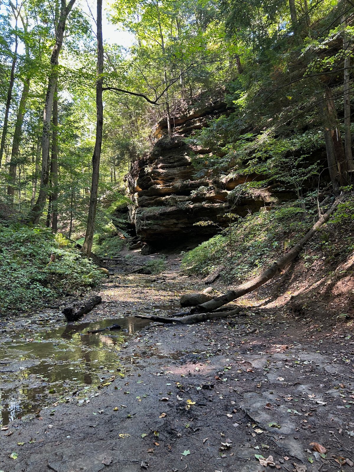 Thursday morning, after we cleaned up breakfast, we drove to another area of the park with several trailheads. With a baby and two smaller hikers, we opted for trails without ladders this year, although Shades does have some highly rated ravine trails that utilize ladders, similar to Turkey Run State Park. We chose trails 1 and 6, which provided us with many of the neat ravine trail experiences, lots of stairs, a waterfall, and some gravel path hiking, as well.