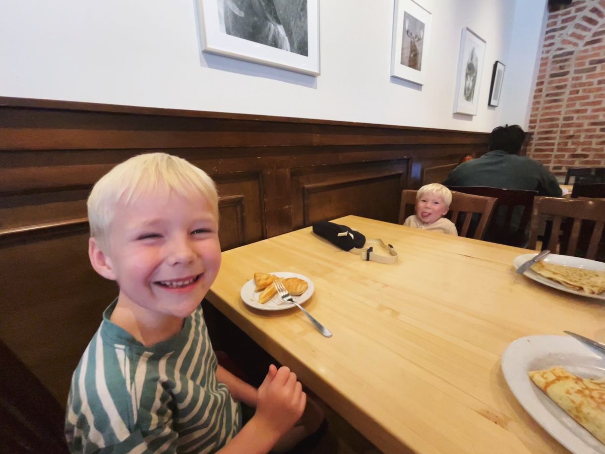 On the drive south, we stopped by our alma mater, Purdue University, specifically the coffee shop I worked at as an undergrad, Greyhouse Coffee. We ordered crepes for lunch, a latte for me, an americano for Nicholas, and pastries for the boys. They've done extensive remodeling since I was a barista (15 years ago!) but the atmosphere is the same – cozy and nostalgic for us. I mention Greyhouse in my recent post about our wedding anniversary. After coffee and lunch, we got back on the road for the rest of the drive.