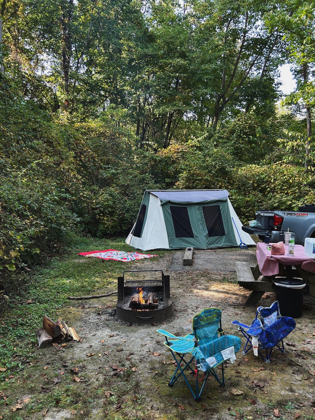 Last summer, we assembled a full collection of gear for proper family (car) camping. A tent, air mattresses, a camp stove, etc – purchased and trialed with first a backyard campout, followed by our first family camping trip in September. We really enjoyed a mid-week camping trip in September – when it's a bit cooler and campgrounds are pretty quiet on weekdays. Since we homeschool, we have the flexibility to shuffle our schedule, as such.