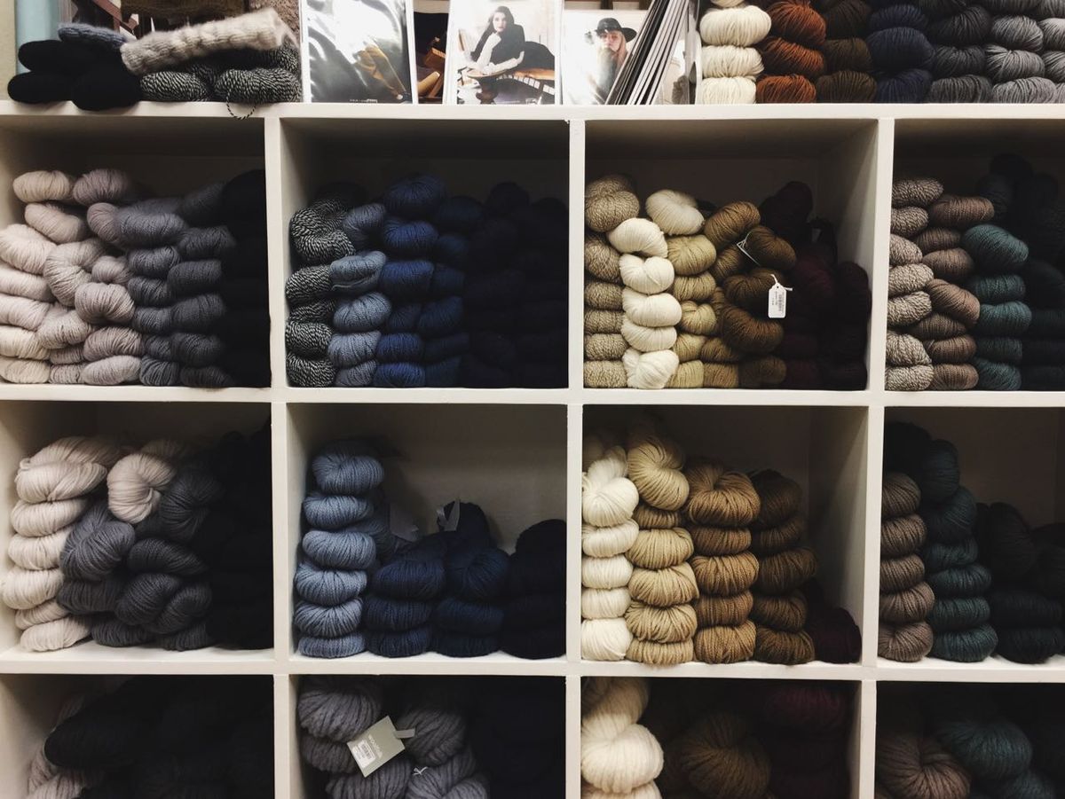 Apart from Thanksgiving dinner-fare, I'm very torn between enjoying Thanksgiving week for what it is and getting so ready to enjoy the anticipation of Christmas. We're holding off on the tree for a few more days, but Saturday is the day! I'm biding my time with a few other "wintry" items. We have the flannel pillows, a Christmas candle often burning, and orange + clove essential oils diffusing. I'm still in the midst of working on knitted Christmas presents, which included a quick trip to the yarn shop today, actually. Below, this is my absolute favorite shelf in the entire store, because those colors, I mean...