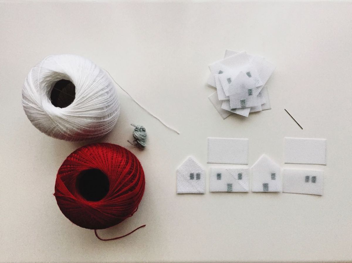 - stitching a mini Christmas village (although, I think these are gonna be cute enough that we may leave them up all winter)