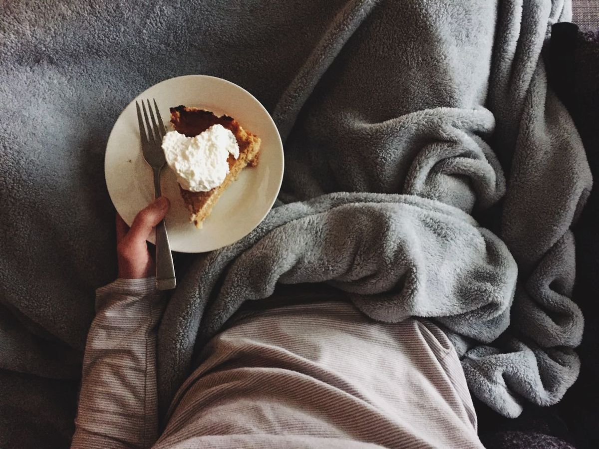 We have a "Friendsgiving" tonight, but I also prepared a pared down Thanksgiving menu for the two of us that could be prepared in advance: baked ham (in the oven right now), cornbread stuffing (I like mine less custardy and more bread-y), roasted brussel sprouts and roasted sweet potatoes. I'm prepping all of it in advance except for the roasted veggies, which I can throw in the oven on Thursday, when I get home from work. And then we're going to eat the best leftovers all week (as are you, I'm assuming). And because it wouldn't be Thanksgiving if I didn't have pumpkin pie, I made a batch a few weeks back (to "test" a recipe) and another batch on Sunday. For the record, pumpkin pie is delightful for breakfast or with fika.