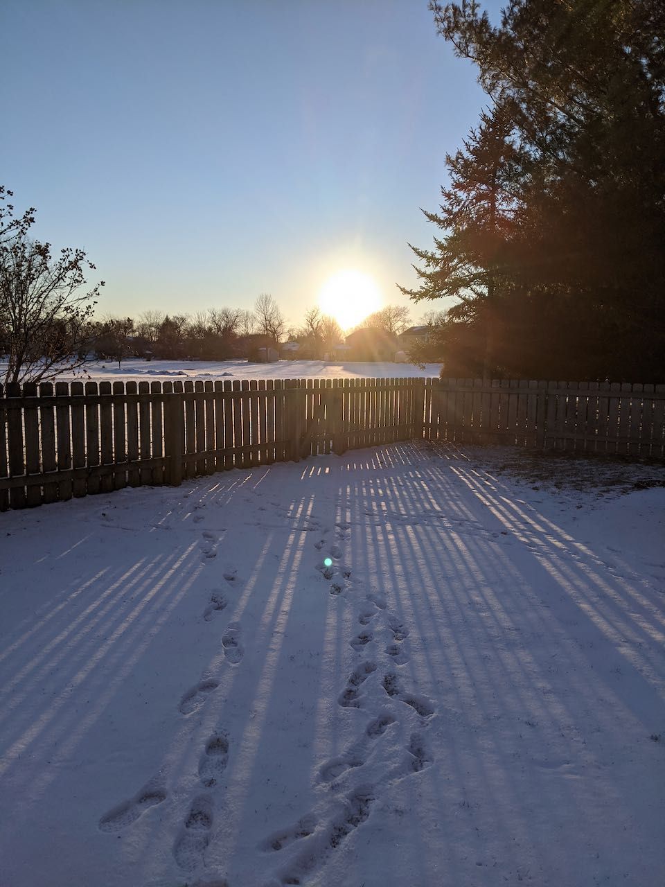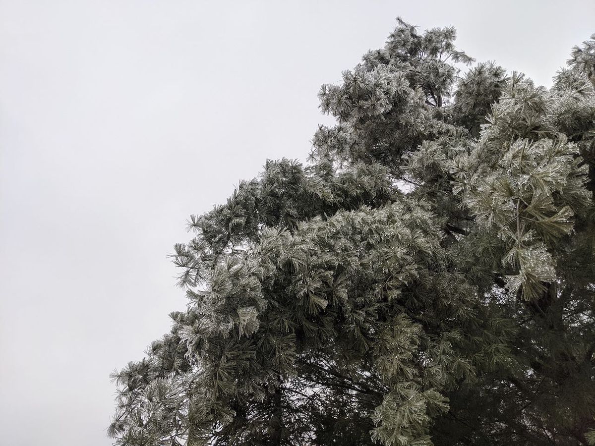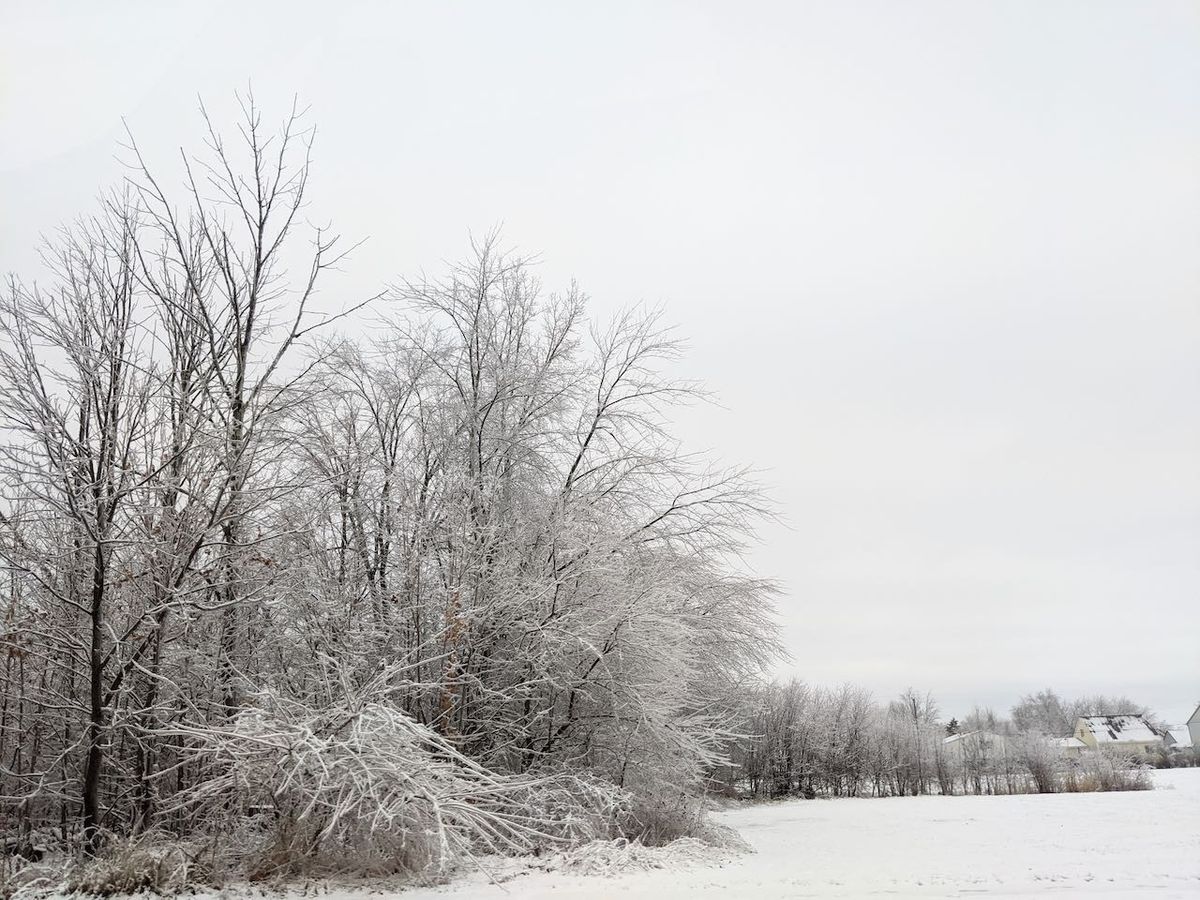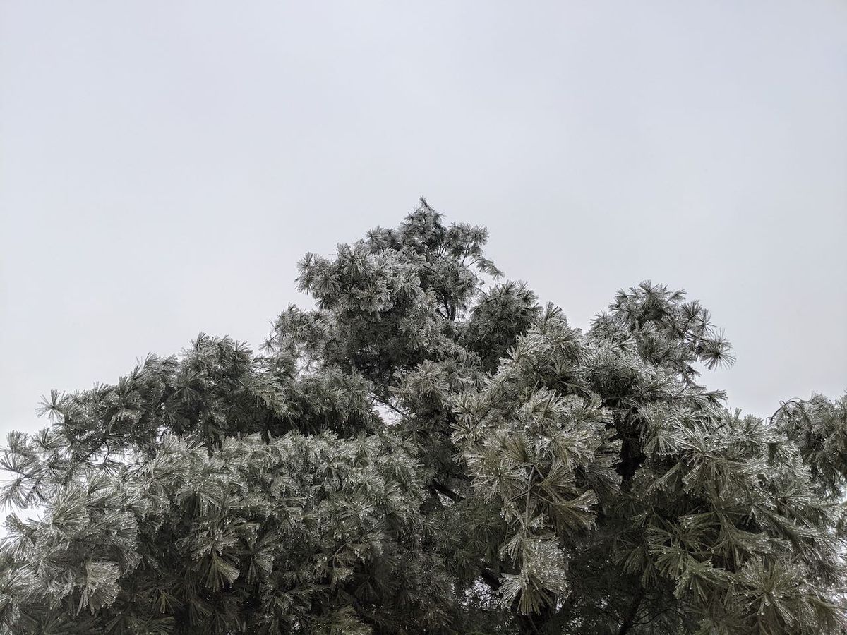 Before one particular snowfall, we had a coating of ice over everything. We lost some large tree branches, but it was beautiful and fragile in such a cold way, like glass on the trees.