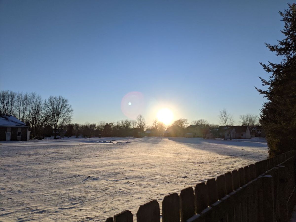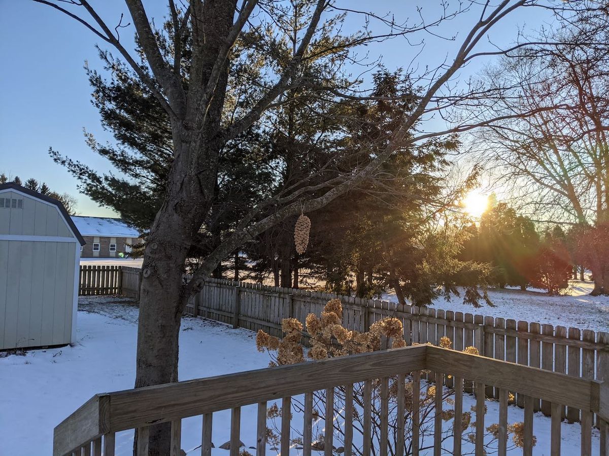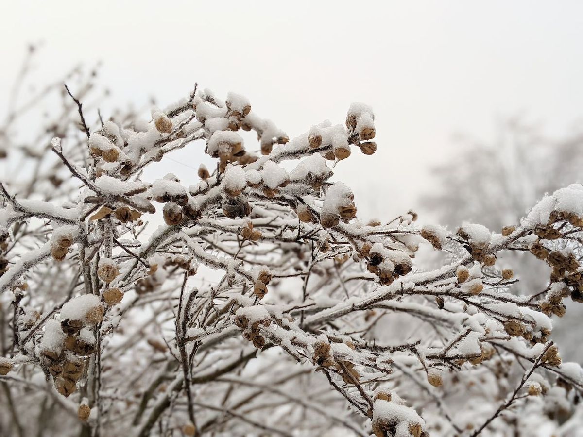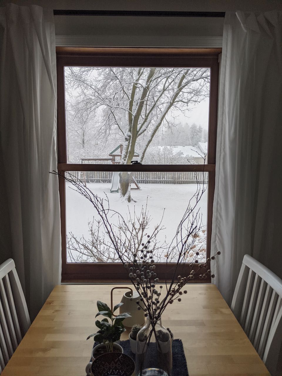 Before one particular snowfall, we had a coating of ice over everything. We lost some large tree branches, but it was beautiful and fragile in such a cold way, like glass on the trees.