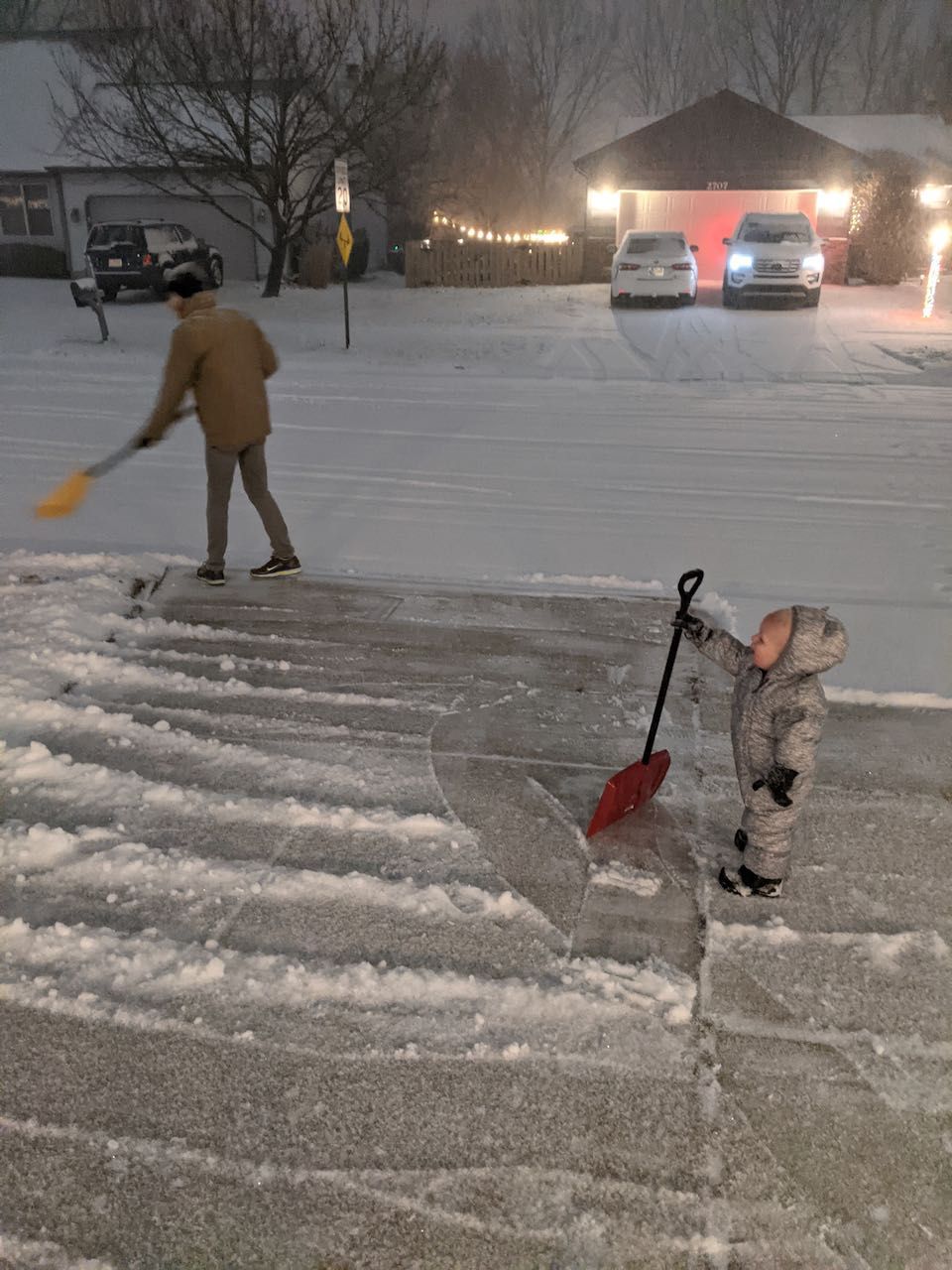 Every time we open the door to the garage, there is excited pointing and squeals of joy, because the shovel is in view.