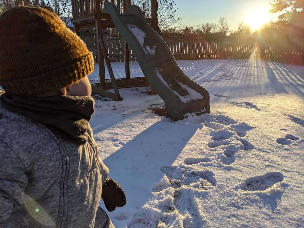 We've been playing in our yard quite a bit, or going for (slow) walks down the street to the park. I felt overwhelmed the other day, looking out at our backyard. I always thought I preferred pristine, untouched, fresh snow. That is, until I saw my footprints next to a little person's footprints, crisscrossing all over the yard. That is my new favorite.