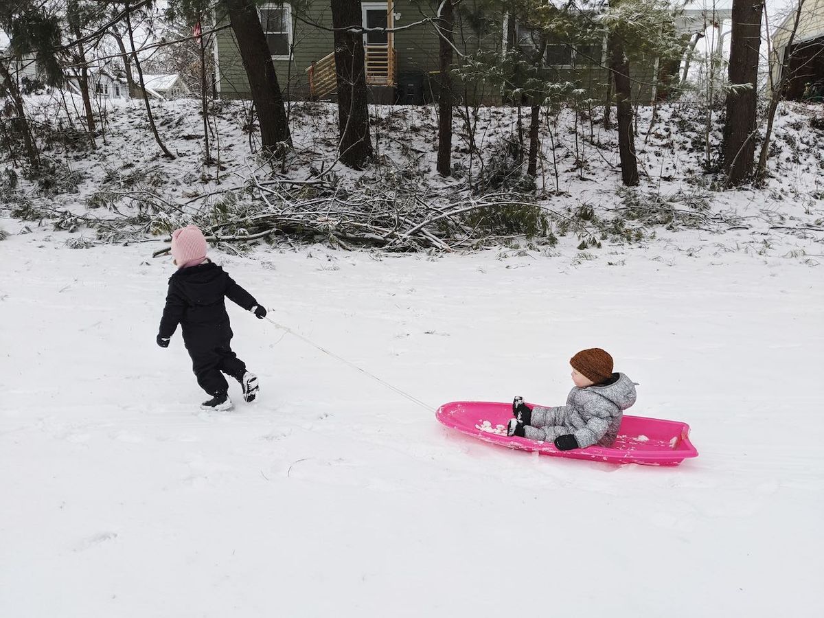 And today, we played with some friends outside in the snow, sledding for the first time (for Cooper) and the first time for me since college, I think. Even on a cloudy day, the snow brightens things.
