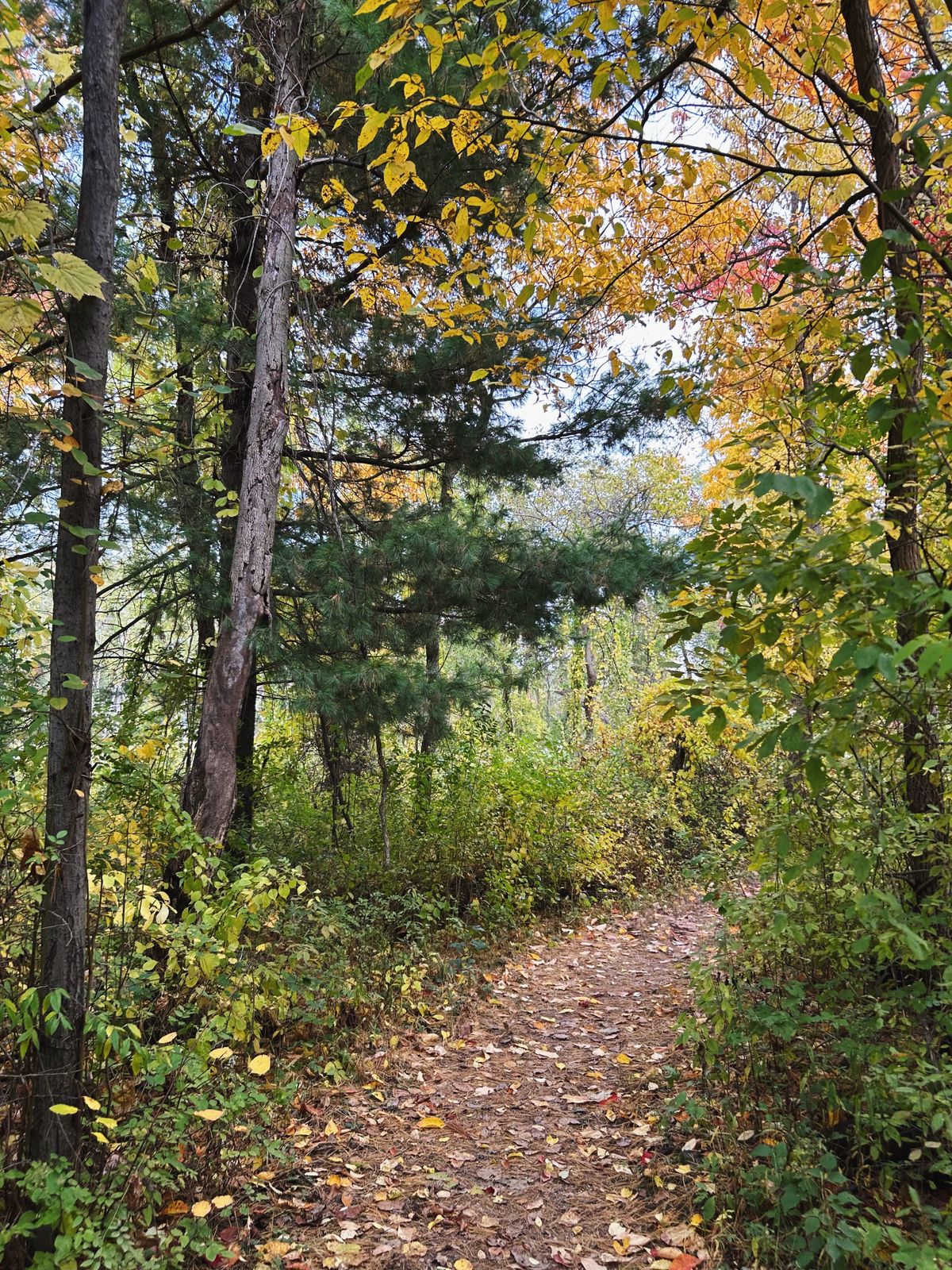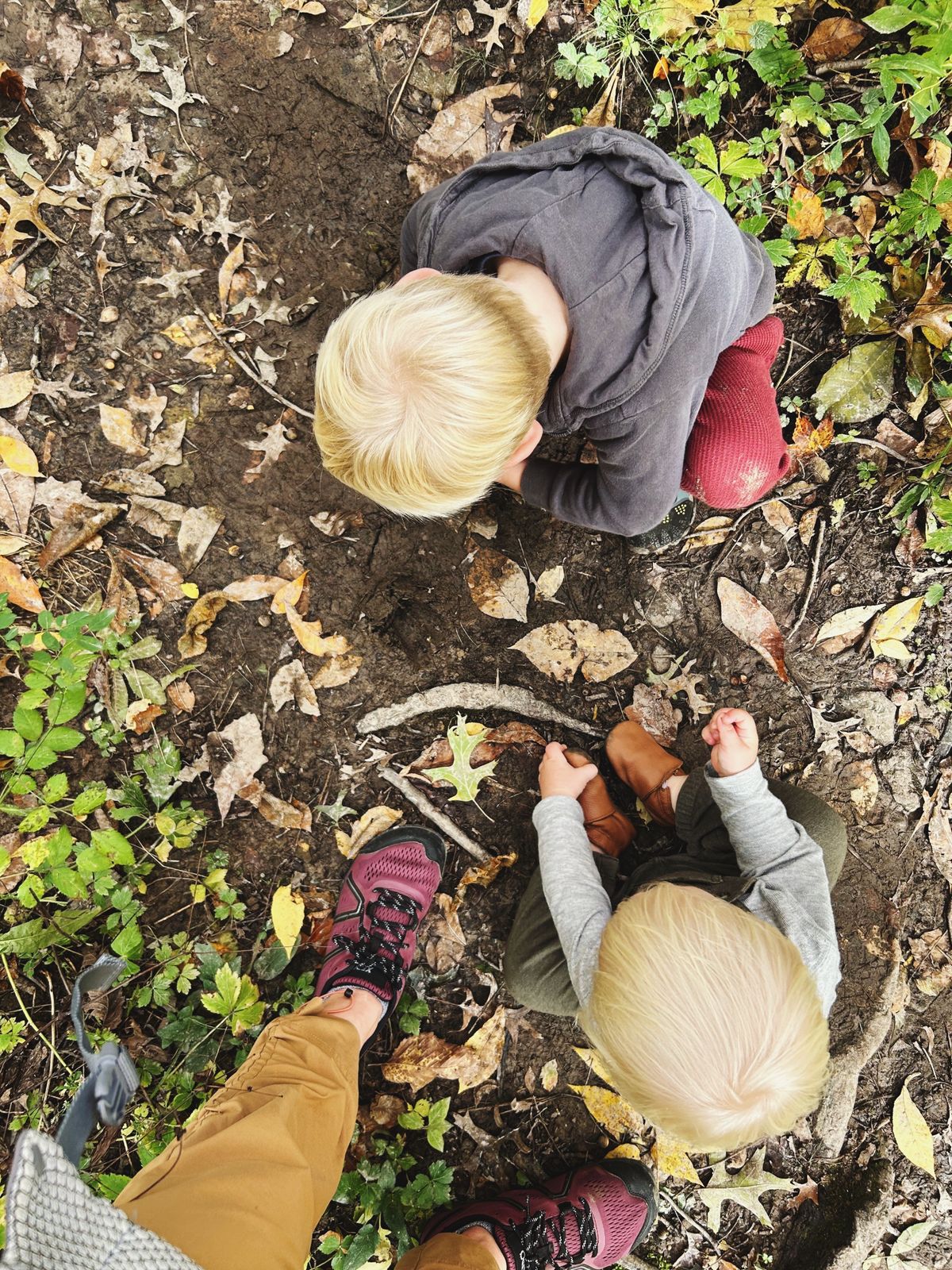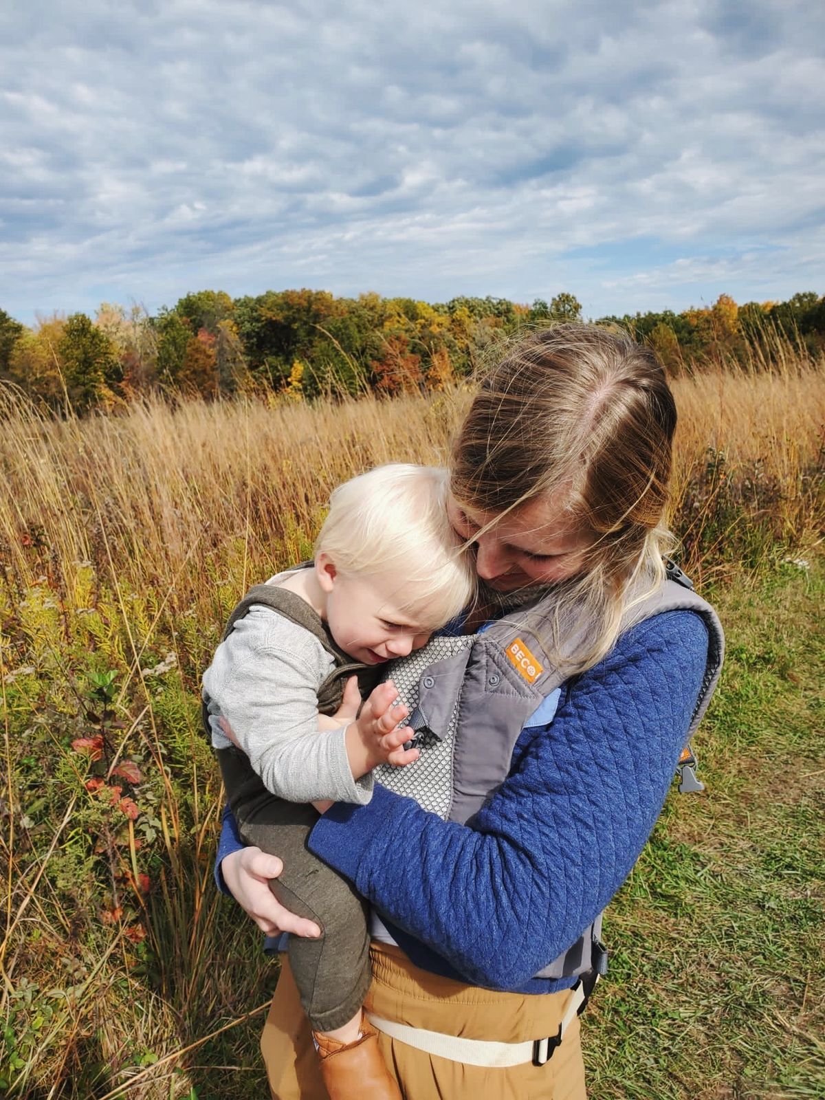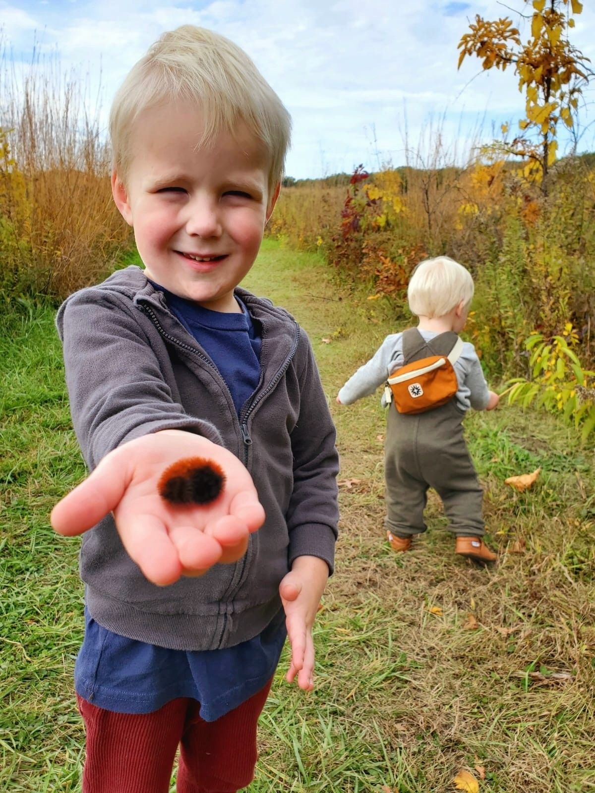 The route we took wound through prairie, into woods, and over bridges, and wove through forests of a deep gold. We hiked around a three mile loop (Cooper walked the entire way! Finn needed to be carried, but he walked around a mile of it). It was another beautiful day, blue skies just peeking out.