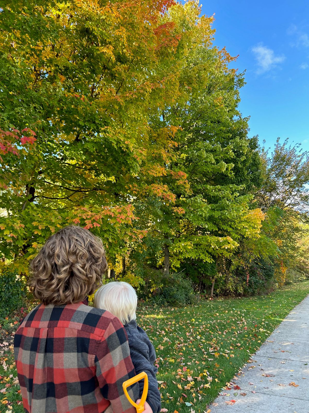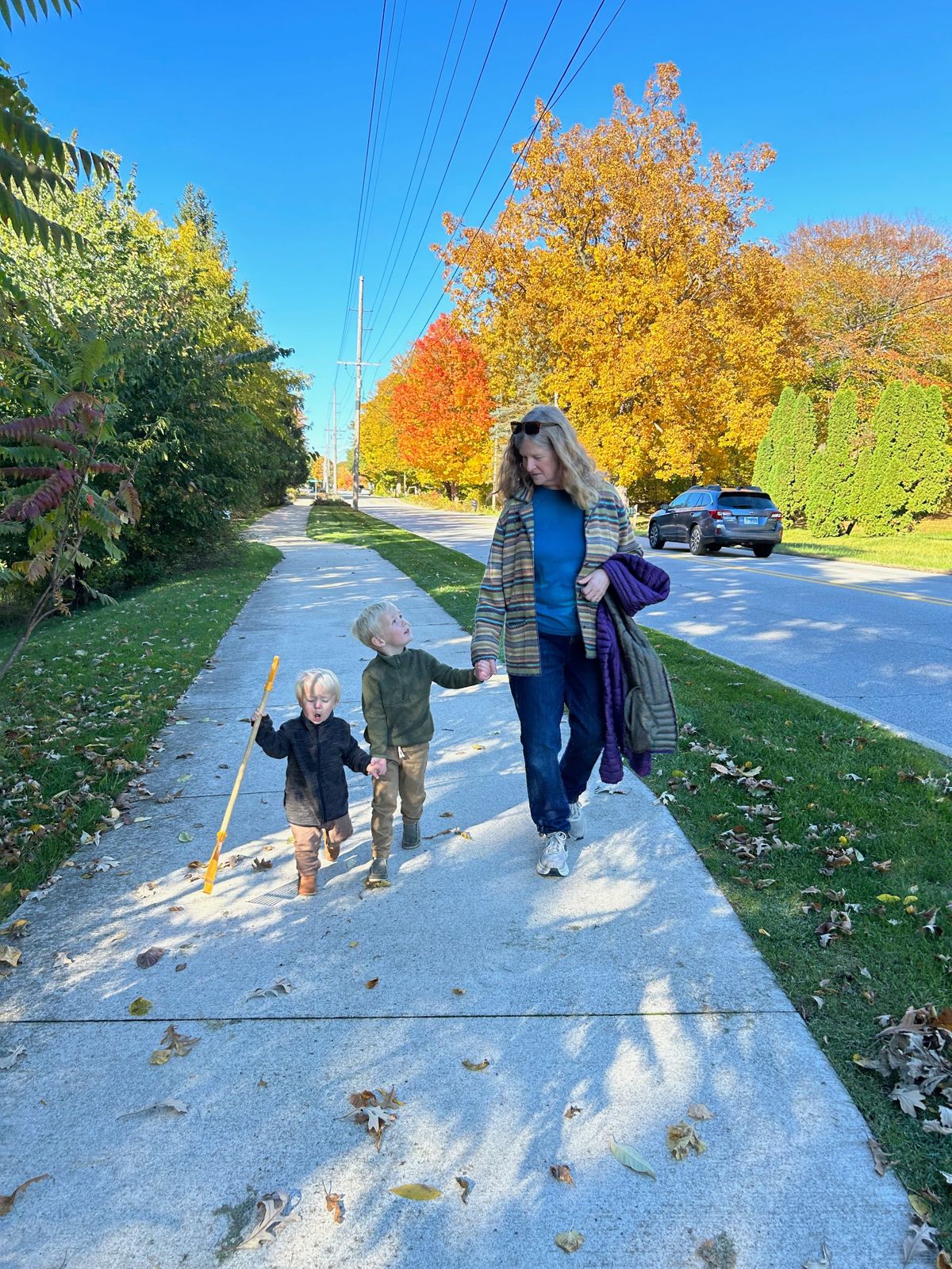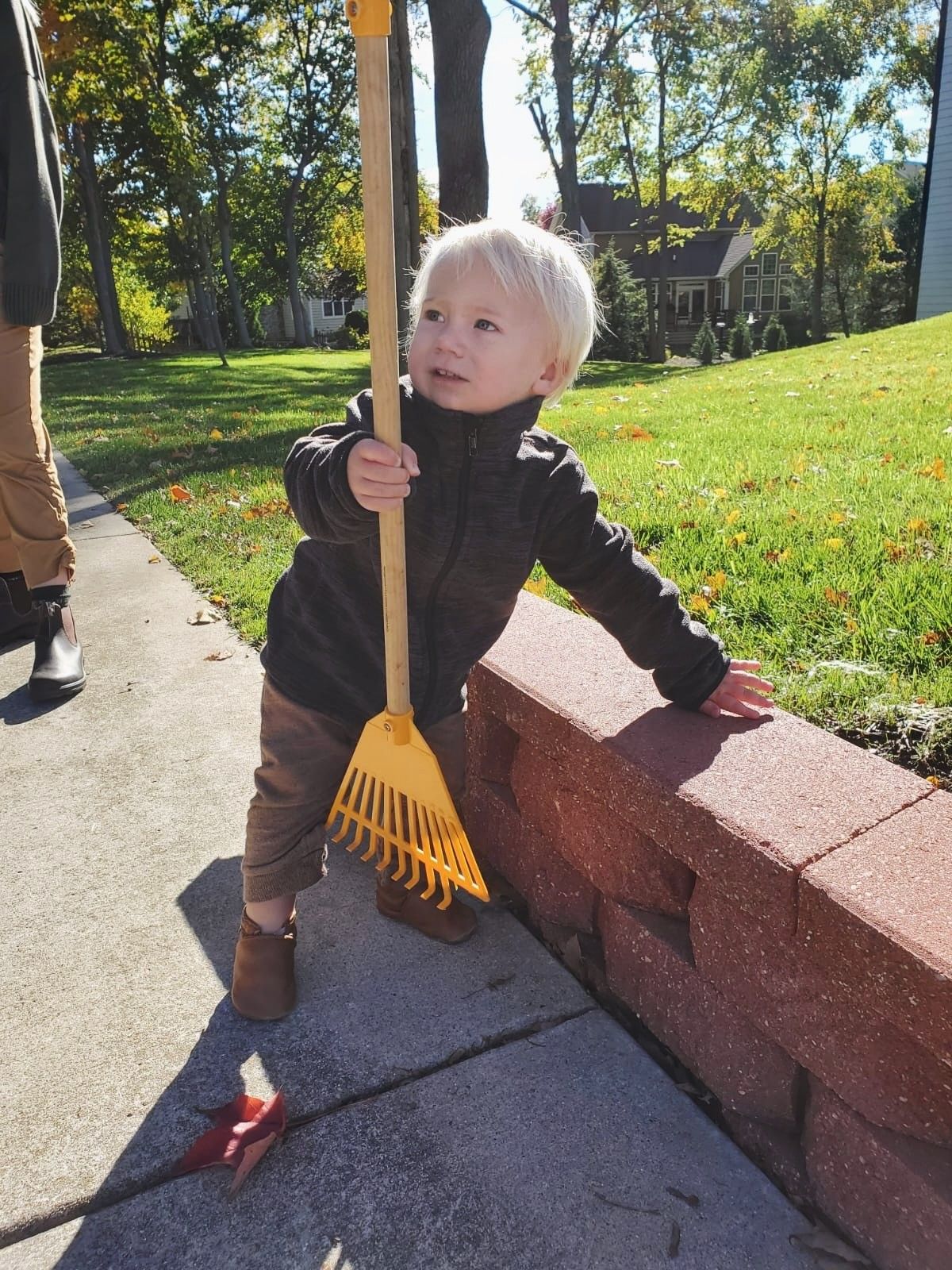 - Finn carried his own little rake the entire time on our family neightborhood walk