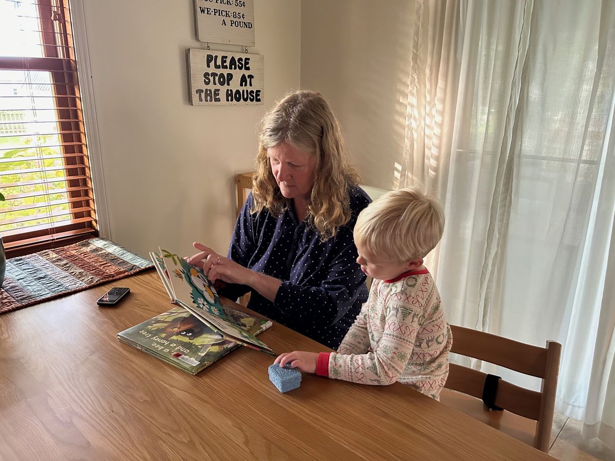 - Cooper wanted to read book after book with my mom. She works at their local library and always has the best picks!