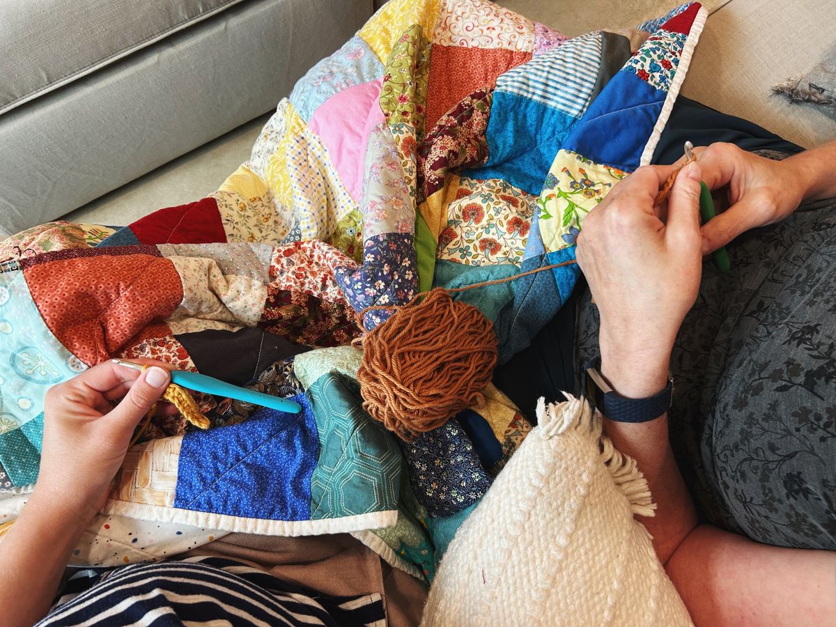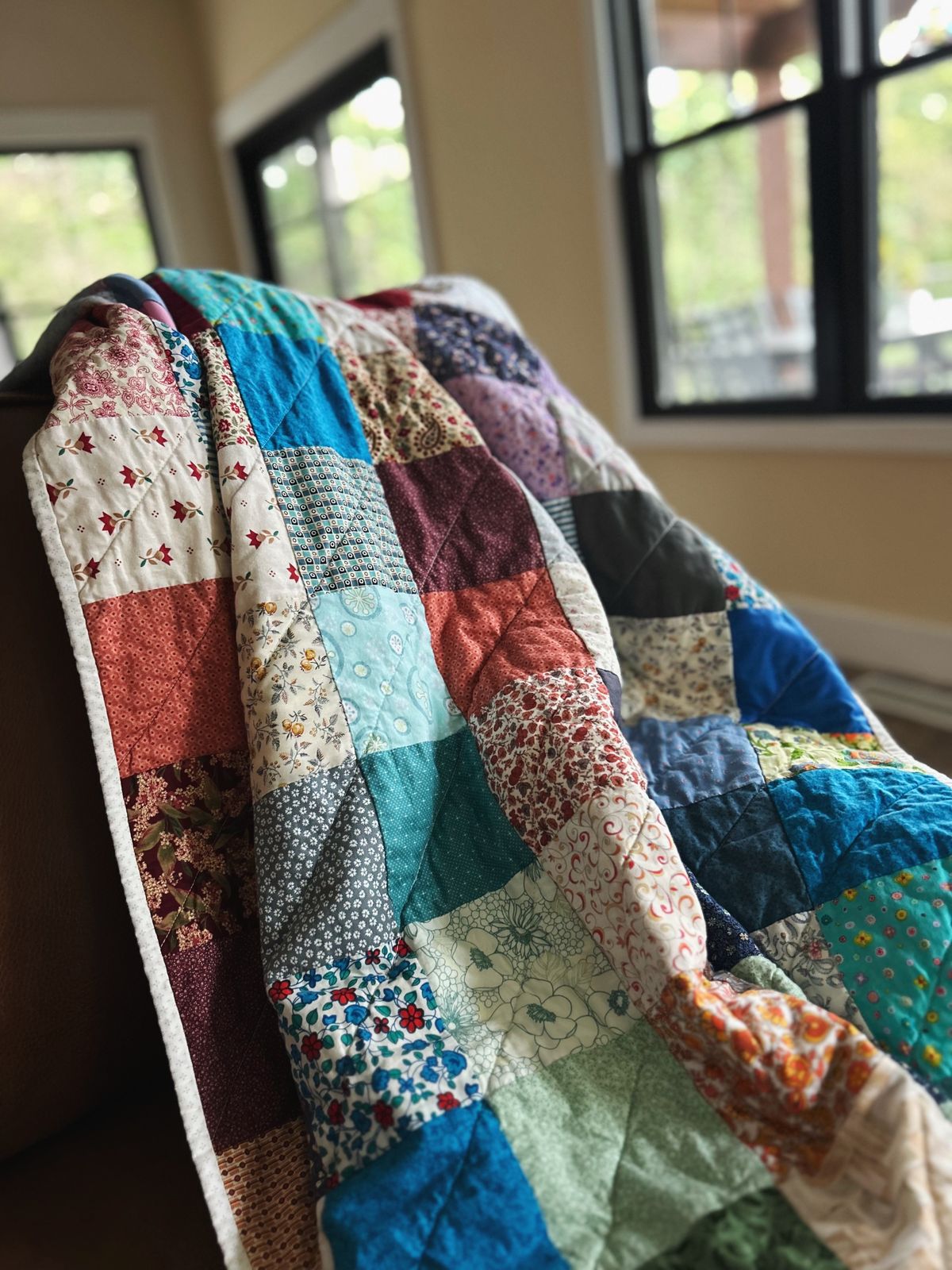 My parents and brother arrived Wednesday evening, and we had a meal I often make for the first night of their visit – chicken tacos in the crockpot. Easy to prep, flexible with timing, and everyone can customize their tacos with rice, avocado, cheese, etc and their choice of tortilla. We spent that evening just in conversation together, which was really nice. And my family gave me some very special early birthday presents! My parents gave me a necklace that had been my Grandma Donna's, as well as some sentimental and sweet porcelain items. And the big surprise was that my mom sewed a scrappy quilt for me! It's beautiful, but also so nostalgic, as I immediately recognized so many of the fabrics from vintage items my mom had, previous projects, and the like. It's seen daily use ever since I opened it.