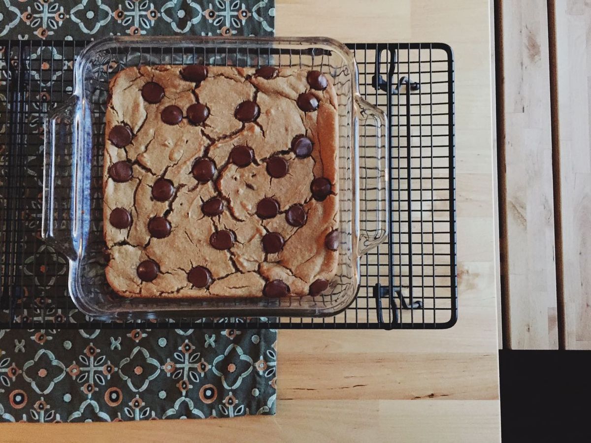 Celebrating Nicholas' half-birthday. We don't normally take notice of half-birthdays, but we happened to remember his this year and I was in a baking mood. I made some peanut butter blondies that have chickpeas(?!), peanut butter, maple syrup, chocolate chips, and a few other ingredients (and no flour). They're quite good, and not overly sweet, which we like, but you have to get over the fact that you're eating beans for dessert. If you're in a experimental mood, here's the recipe I used.