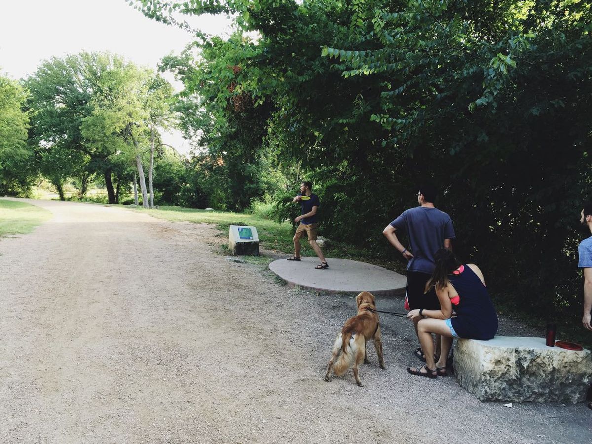 Disc golfing early in the morning. To beat the hot, hot Texas heat, we met up with some friends for a round at 7am, coffee in hand, and we did our best to dodge the poison ivy ground cover (unsuccessfully—eek!)
