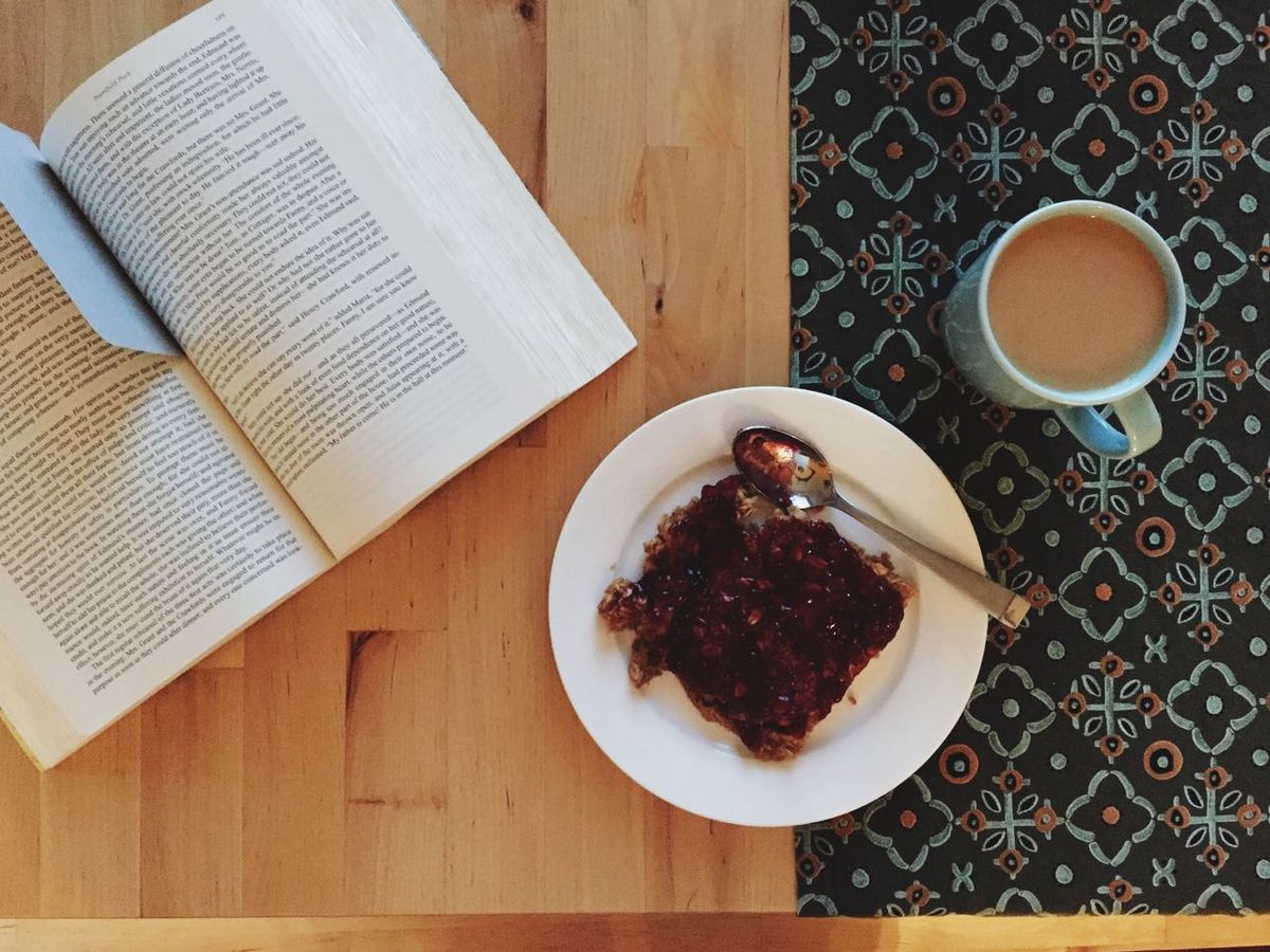 Breakfast food (always) and Mansfield Park. A wonderful way to start the day (especially if my day starts at two- or three-in-the-afternoon when I wake up. :)