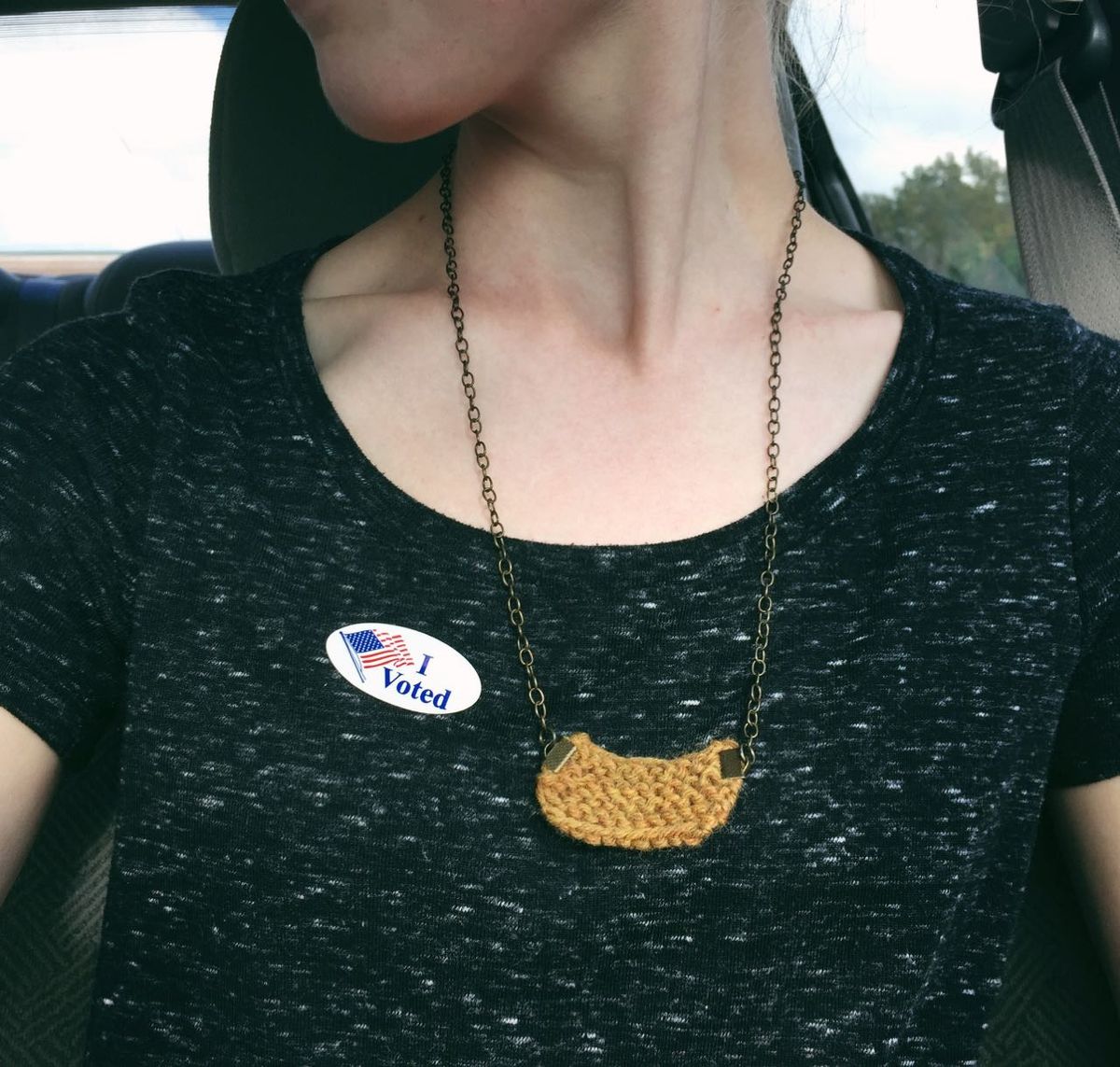 - getting dressed in jeans, and a swingy, comfy top, and a necklace my friend Maeve made for me