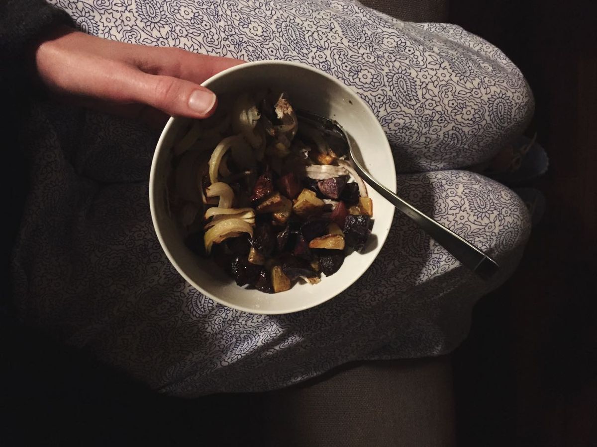- making "Thanksgiving in a bowl" a la chicken in the IP(settings, etc. at the bottom of this recipe post), seasoned with sage, allspice, S+P, garlic powder; thrown in a bowl with oven-roasted fingerling potatoes, and oven-roasted onions