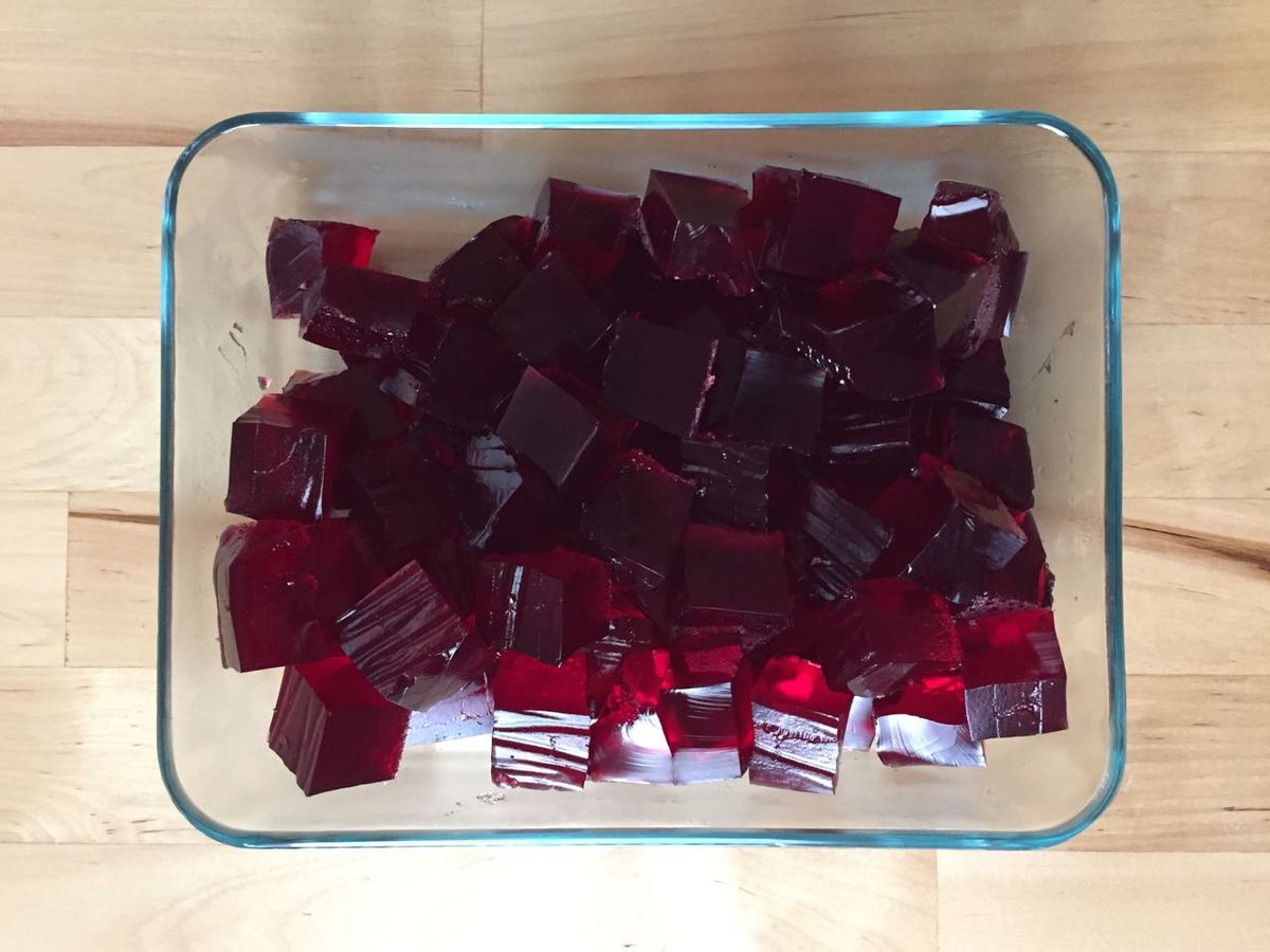 - making homemade fruit snacks/"jello jigglers" as we called them when we were kids (I added 2-3 T honey after the gelatin dissolved, because my 100% cranberry juice was so tart)