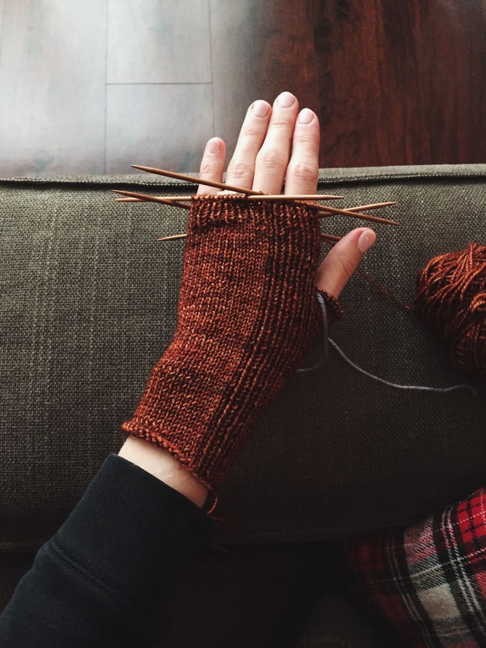 - knitting on scrappy socks and my green sweater, but mostly on fingerless mitts for my mom's birthday