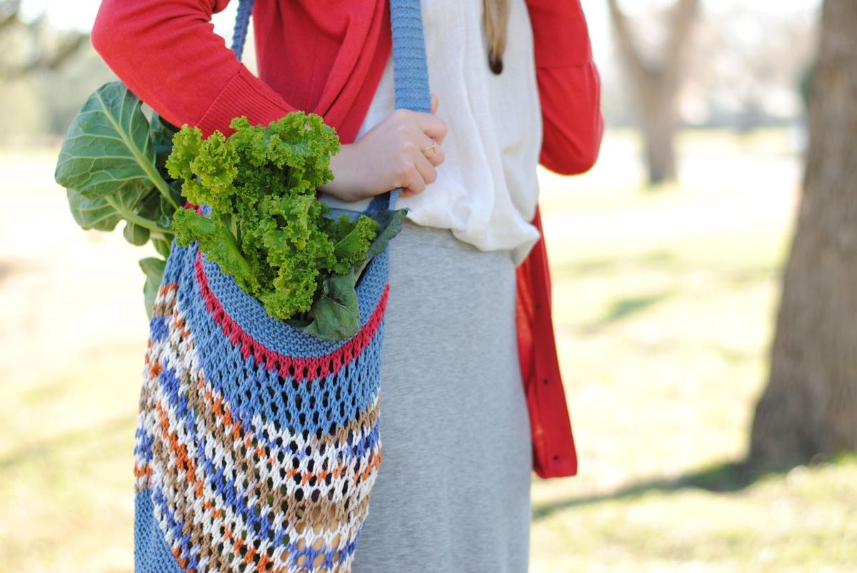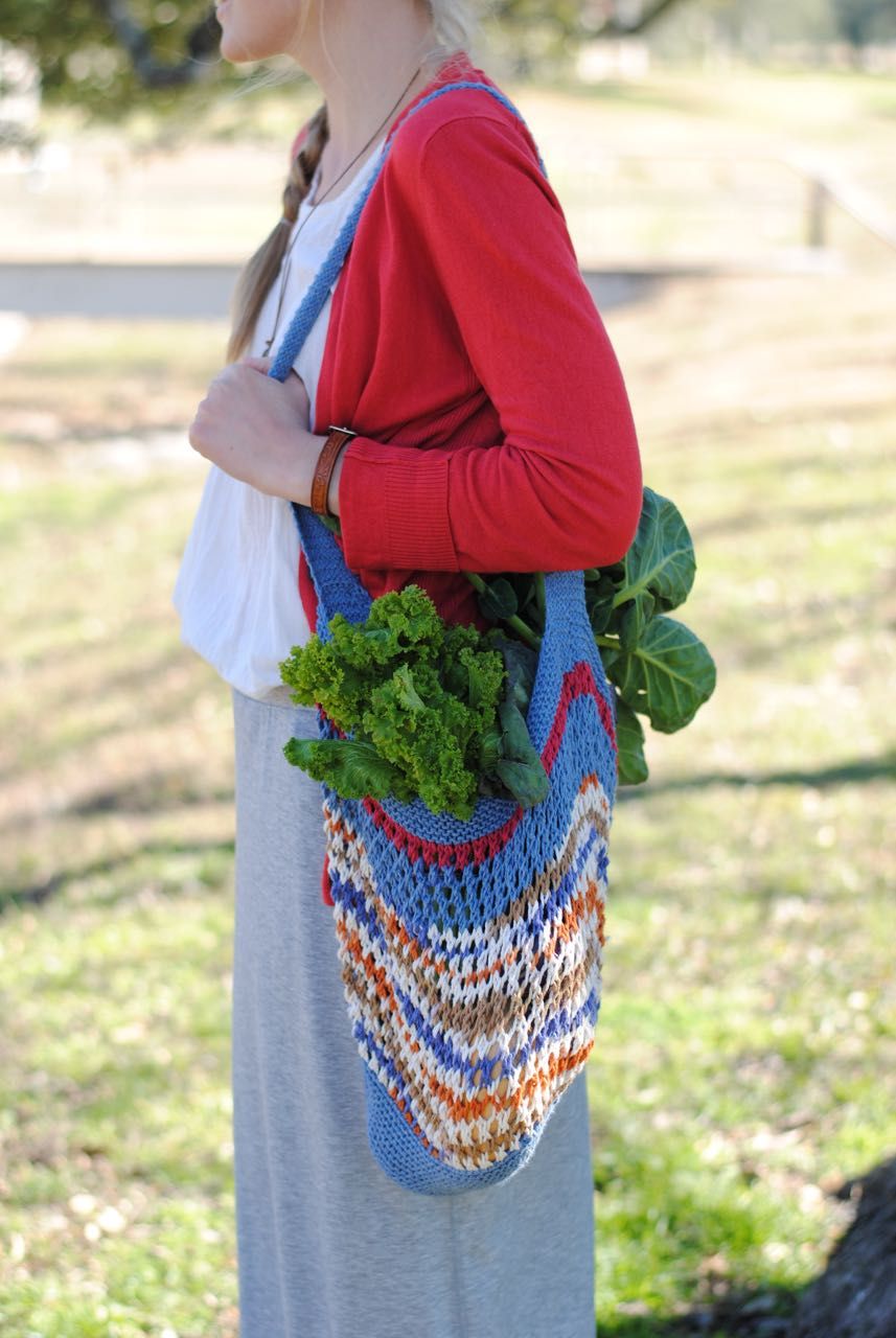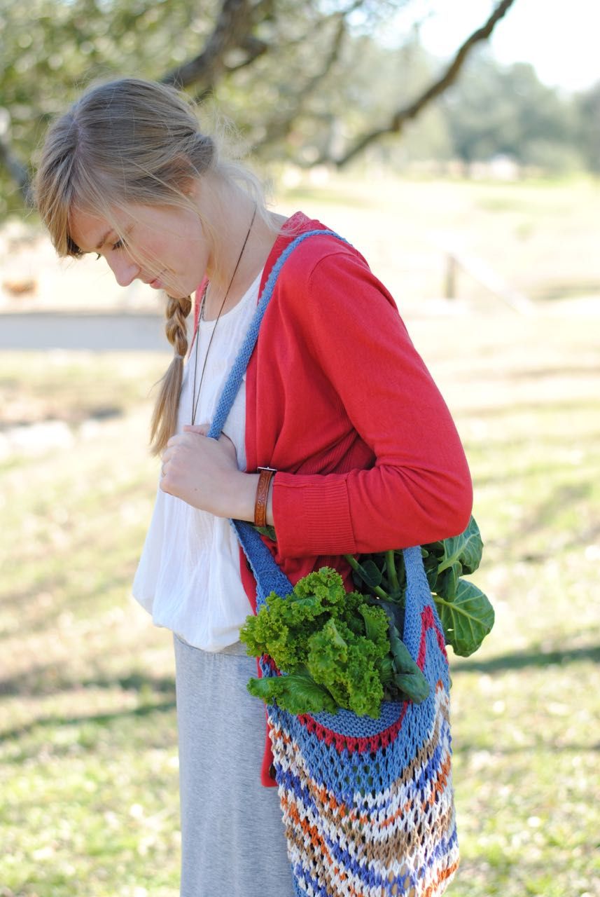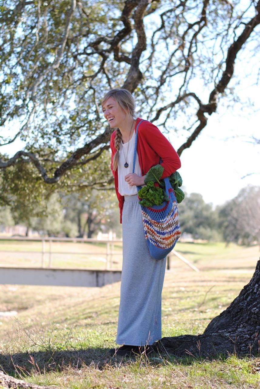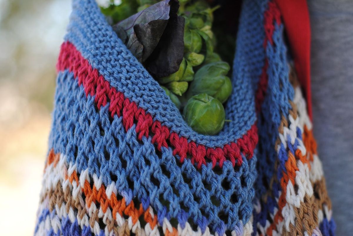 The more I knit, the more my knitting tendencies skew to the practical side of things. Garment-wise, this means mostly neutrals. Because practically, that's what I wear (with a few notable exceptions). But when I knit accessories, I'm love color. One of my favorite non-garment practical knits is the Grrlfriend Market Bag (that name....I know). I've used a modified version of this pattern to knit three now. One was a gift, but the other is in constant rotation for trips to Target and the grocery store. Benefits of this type of knitting project: bright colors, big needles, inexpensive yarn (I use a cotton yarn from JoAnn's), and a super useful, machine-washable finished object.*