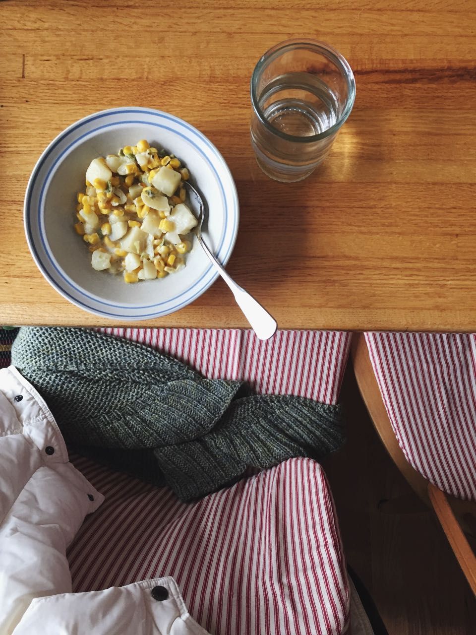On Sunday, we bundled up for church, heard a sermon about Moses and his shining face (in Exodus 34, super fascinating), and sang hymns. I got to give my friend Lauren a hug, and talk with her for awhile and marvel at how wonderful it is to see people you love in person. Then we drove back to my parents' house, had a delicious brunch of egg bake and more gf cornbread, fruit, glasses of whole milk (the best thing ever when I'm home), and a little bit more coffee. I walked my brother through prep of French press vs aeropress coffee, to see which he preferred (method and outcome).