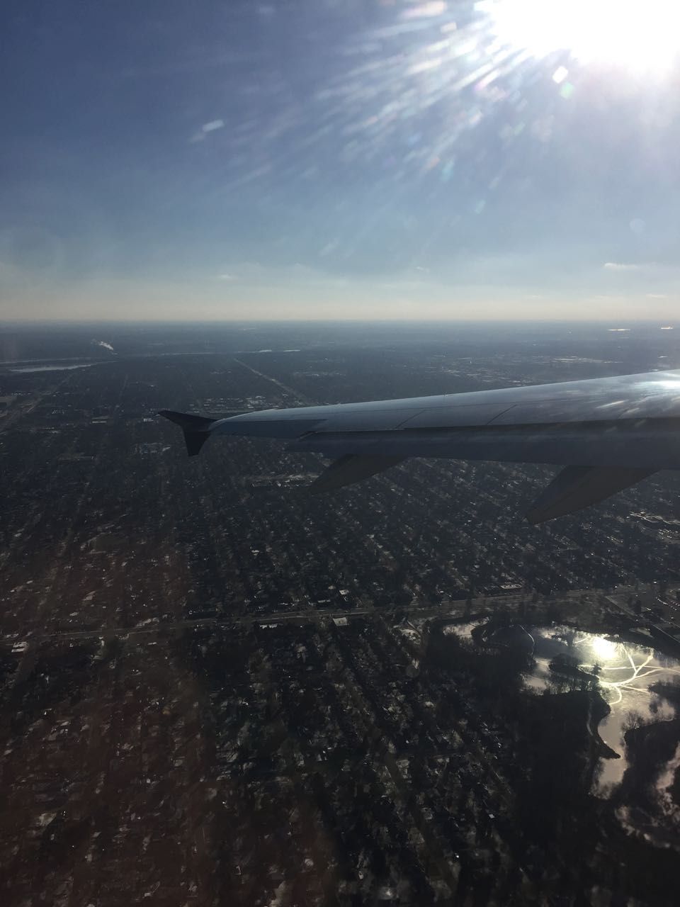 We woke up at 3:30AM(!) on Saturday in order to pack up and make it to the airport for our 6:15AM flight. We only brought personal items on the plane, and checked a bag, since we forget how much space winter clothes take up! I always feel less frantic when I'm not trying to juggle a personal item and a carry-on item. We found our seats and the plane took off early, and I slept, like I usually do, on any type of vehicle. Car rides, planes, etc., they lull me to sleep, unless I'm solo traveling. Little did Nicholas know that when he married me, he signed up to be a pillow for life. ;)