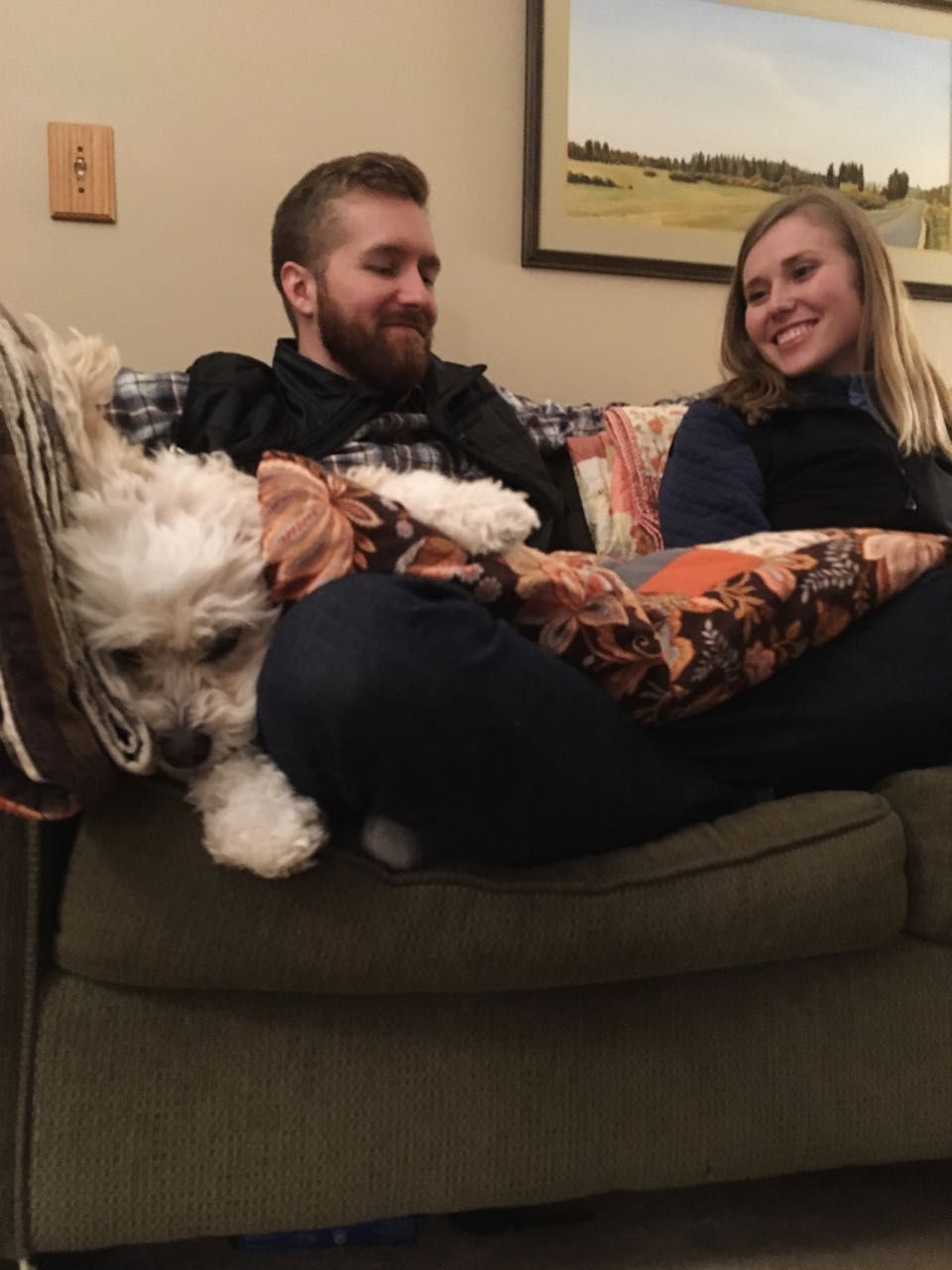 Later that night, me Matt and Nicholas played a few rounds of Majesty, I took my parent's sweet dog, Gingersnaps, out for a snowy walk, which was one of my favorite moments of the trip.* and then went to bed after showers and outfitting the air mattress with several blankets and one of my mom's handmade quilts.
