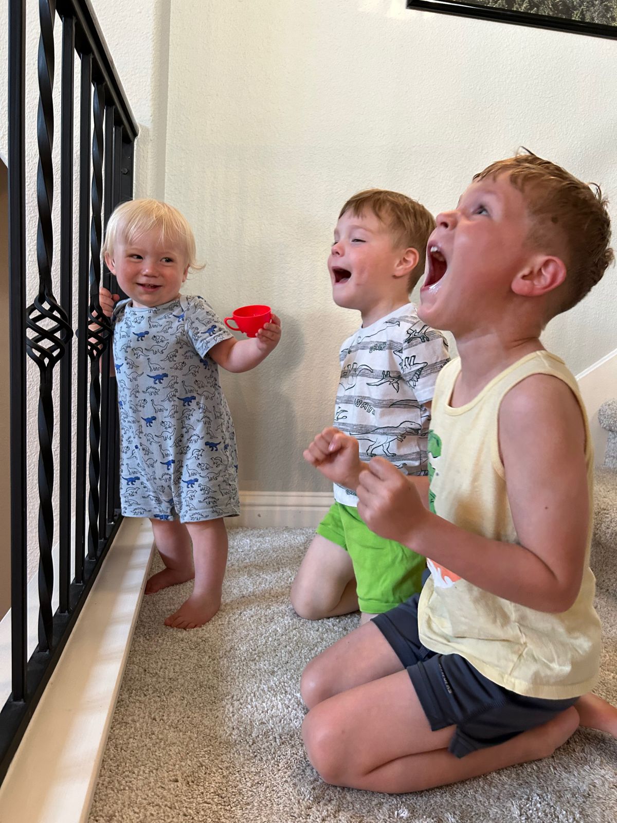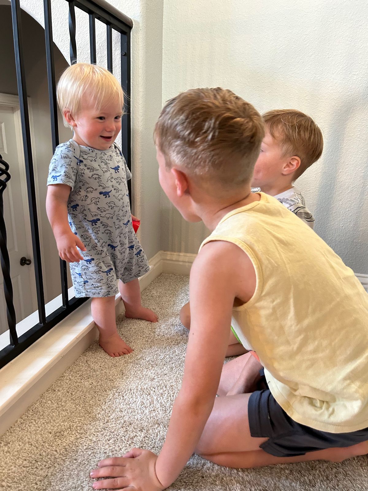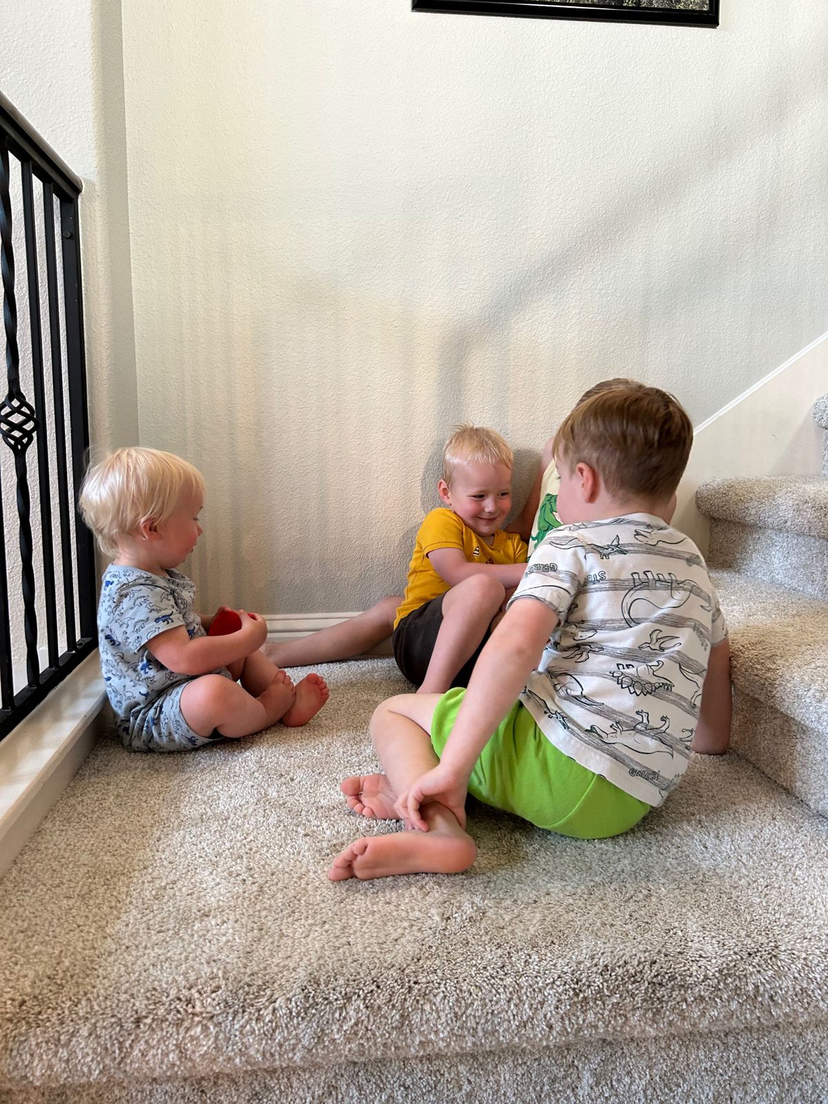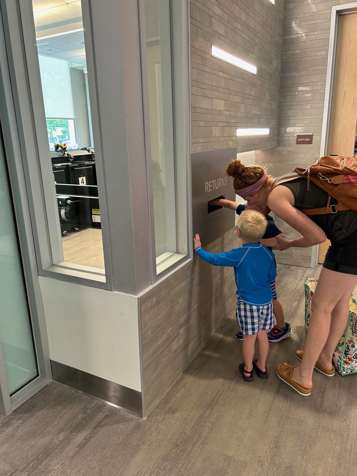 Later that afternoon, we visited their (newly built) local library, including an automatic book return that Cooper enjoyed, and then walked to the splash pad. So fun to see their usual favorite spots and all four boys really enjoy the splash pad. The love of water bridges so many ages in childhood.