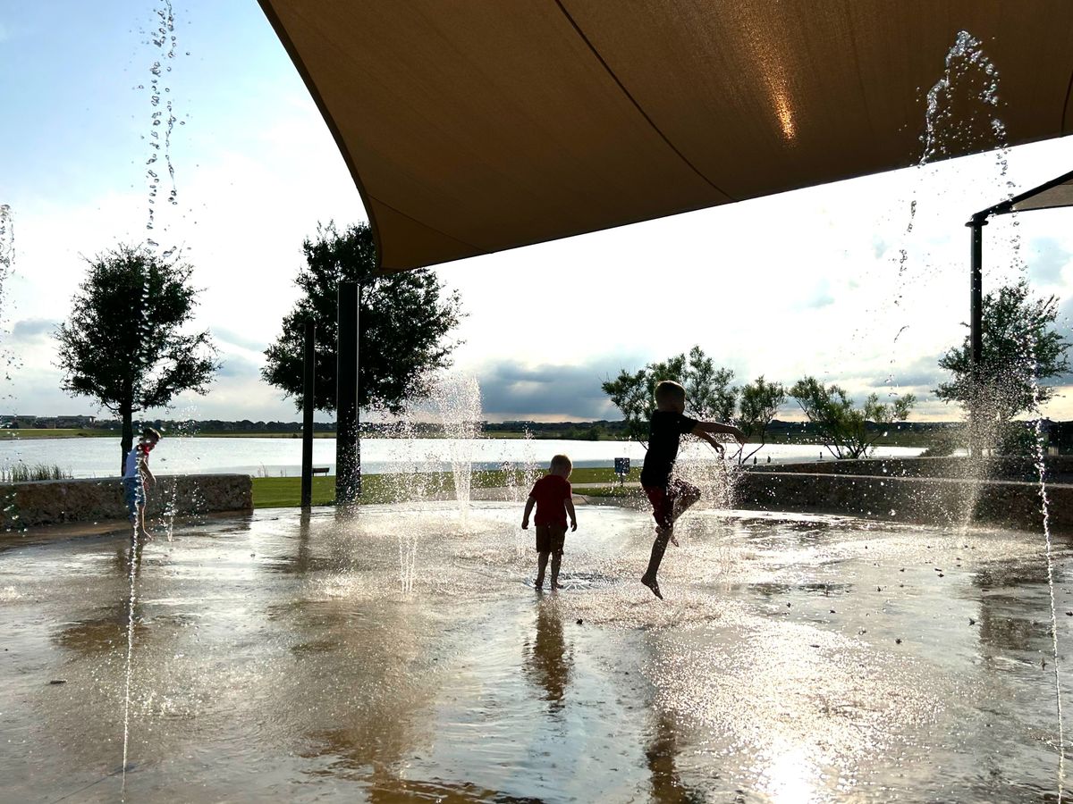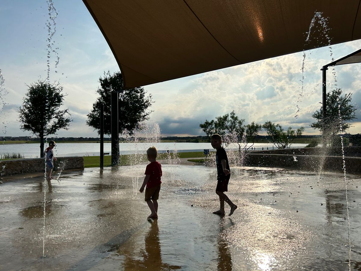 The day we arrived, after dinner, we all walked to the park in their neighborhood where the boys played in the splash pad in their clothes. It was warm and breezy and the most beautiful evening.