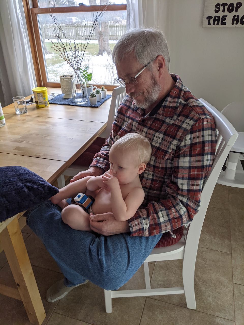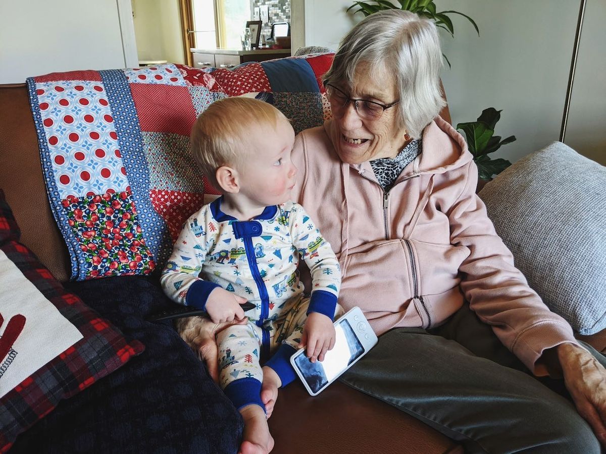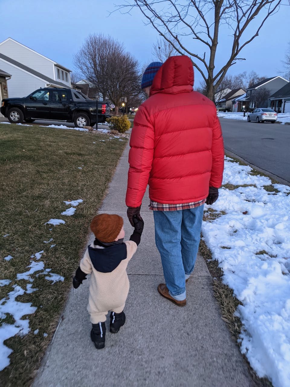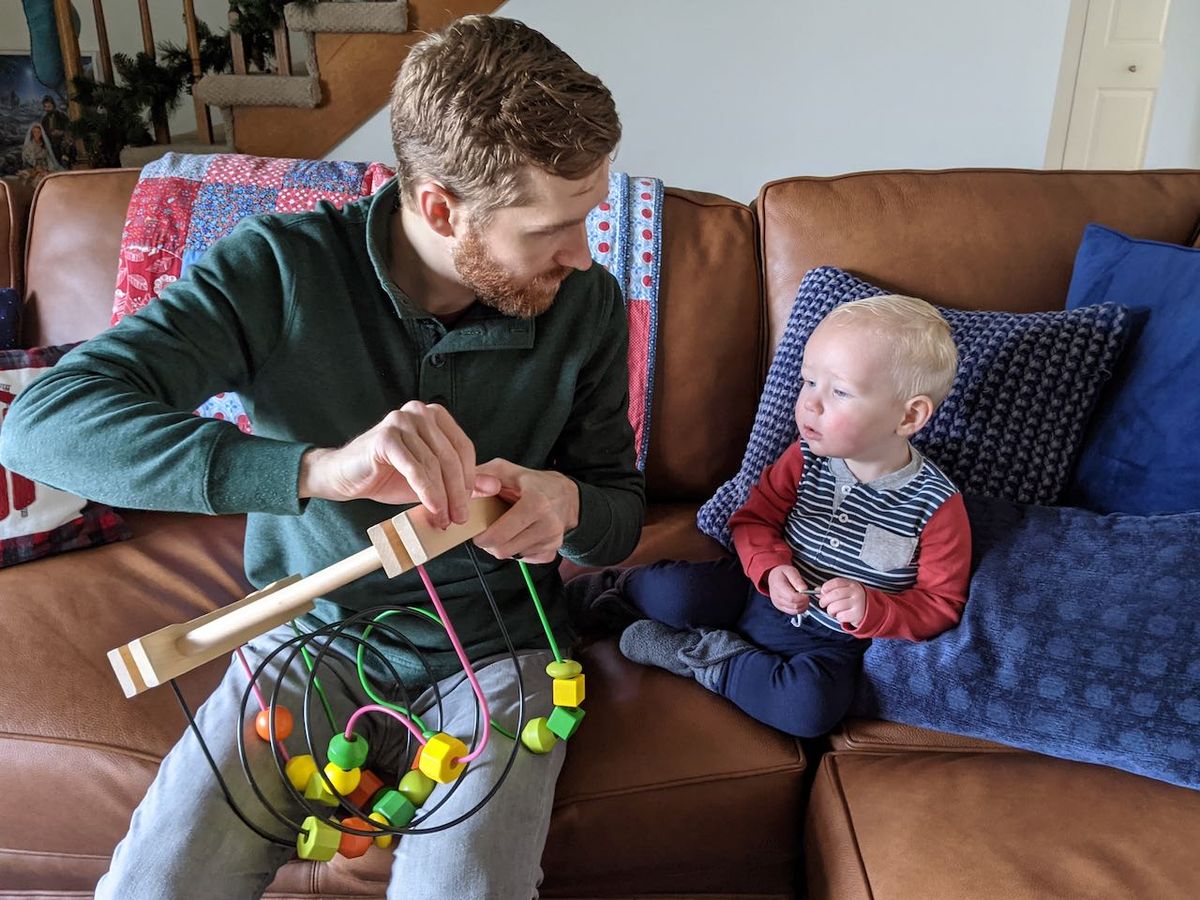 And then, a week or so into January, my parents, brother, and Grandma Donna came to visit and see our new home for the first time and to celebrate a belated Christmas together in person. We exchanged gifts. We played rummy and watched some Talasbaun together. My dad and I made chocolate covered pecans and walnuts. We played in the backyard with Cooper and visited the park down the street and Cooper went down the slide over and over, wanting my parents and my brother to catch him and "reset" him to go again. My mom read books to Cooper. I chatted with my mom and Grandma about motherhood and quilting and knitting. We visited the lights and the tree still up in Central Park and watched people ice skate (Coop's favorite thing to watch). And we snacked on cranberry oatmeal squares and drank quite a bit of coffee. It was so nice to give family hugs in person, and so special to see Cooper grab my dad's hand walking home from the park, or to see them play with the wooden train set together. To see my mom chase him around. Lots of little moments and blurry photos treasured up in my heart, from both Christmases.