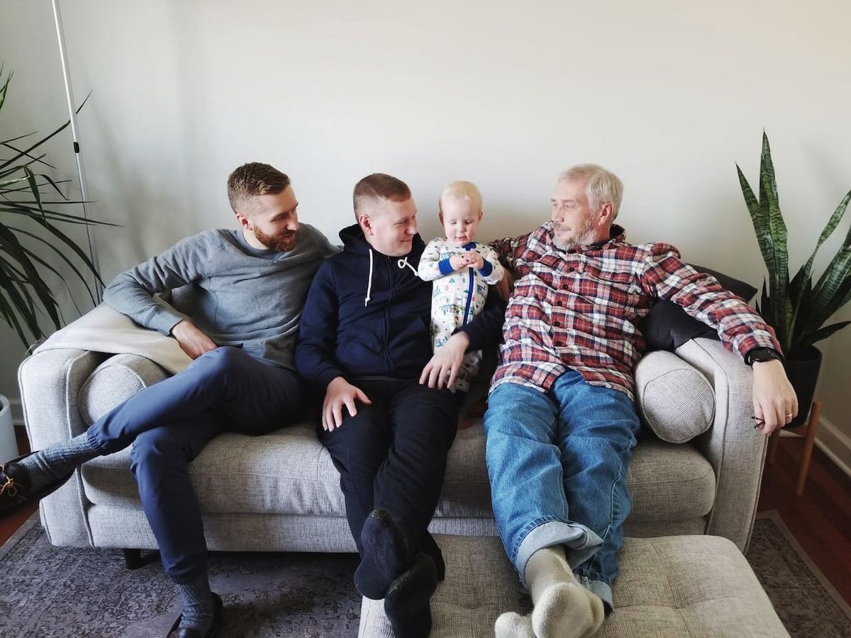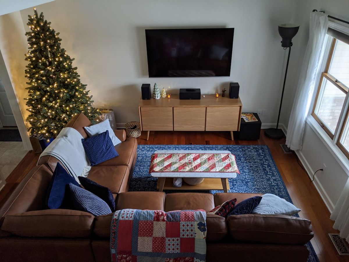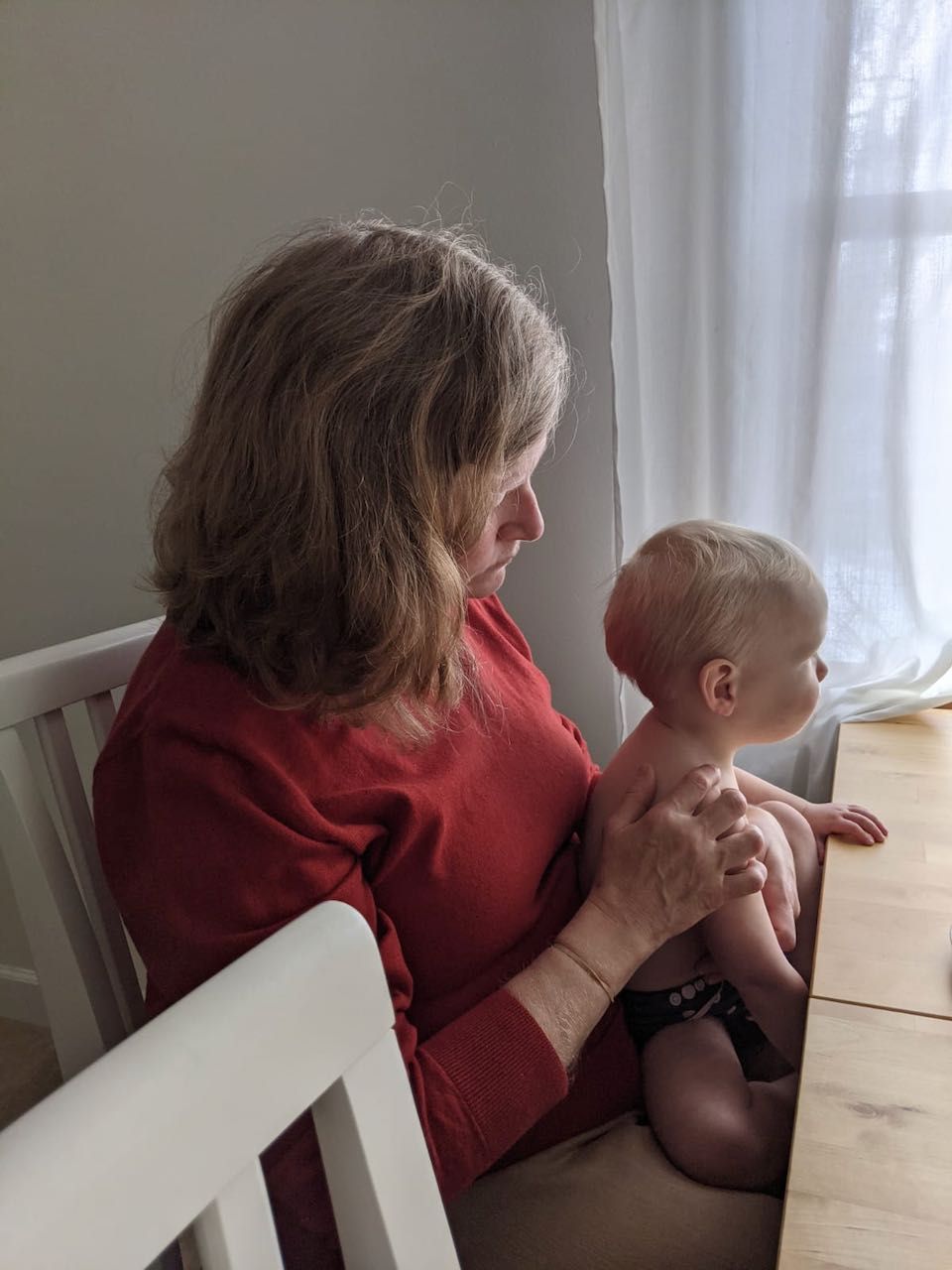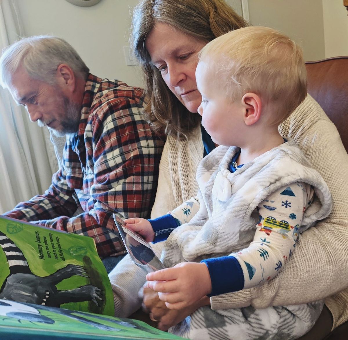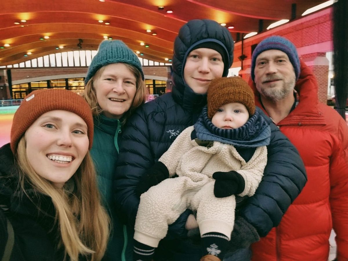 And then, a week or so into January, my parents, brother, and Grandma Donna came to visit and see our new home for the first time and to celebrate a belated Christmas together in person. We exchanged gifts. We played rummy and watched some Talasbaun together. My dad and I made chocolate covered pecans and walnuts. We played in the backyard with Cooper and visited the park down the street and Cooper went down the slide over and over, wanting my parents and my brother to catch him and "reset" him to go again. My mom read books to Cooper. I chatted with my mom and Grandma about motherhood and quilting and knitting. We visited the lights and the tree still up in Central Park and watched people ice skate (Coop's favorite thing to watch). And we snacked on cranberry oatmeal squares and drank quite a bit of coffee. It was so nice to give family hugs in person, and so special to see Cooper grab my dad's hand walking home from the park, or to see them play with the wooden train set together. To see my mom chase him around. Lots of little moments and blurry photos treasured up in my heart, from both Christmases.