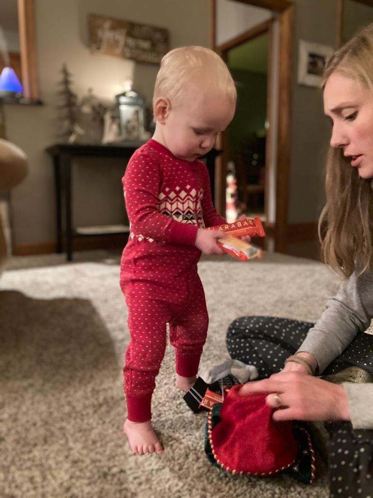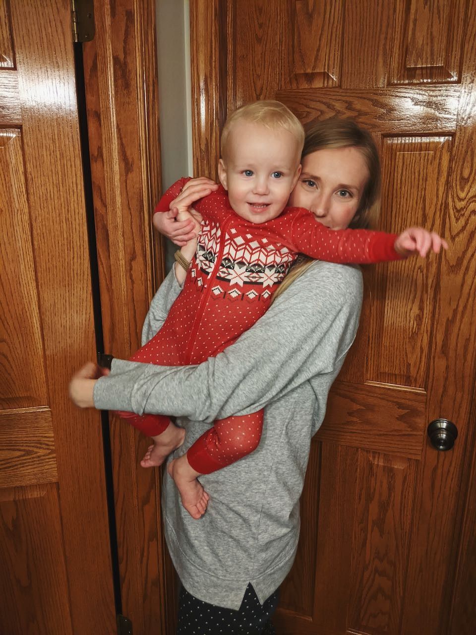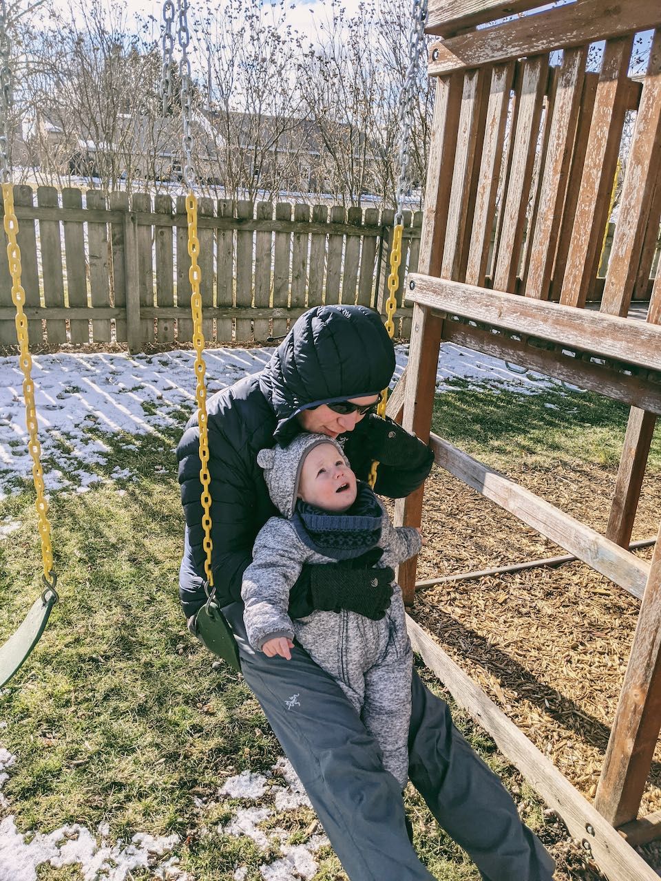 Christmas morning was quiet with just the three of us, eating bacon and eggs and drinking coffee, reading the Christmas story and exchanging gifts between us and a few for Cooper. To say Coop was enthusiastic about opening gifts in an understatement. After our morning, we ate lunch and then headed to my in-law's for an attempted nap for Coop (unsuccessful, if I'm remembering correctly). We exchanged gifts in the afternoon, and then made ham, mashed potatoes, and roasted asparagus. Nicholas and his dad spent a few hours assembling a swing for my MIL (a gift from her parents). We had peppermint coffee and grain-free coffee cake and cookies in the afternoon. I'm pretty sure A Christmas Story was playing in the background and we chased Cooper around. We took some photos on the assembled swing while it was in the garage because it was only around 15 degrees. And then we headed home, and video chatted with my family before Cooper went to bed. Such a full and lovely two days.