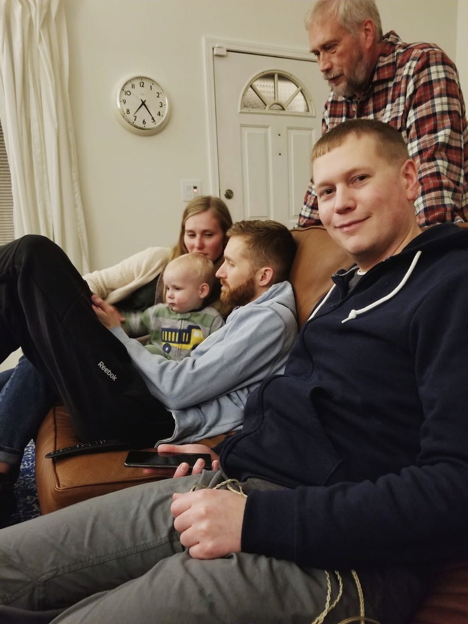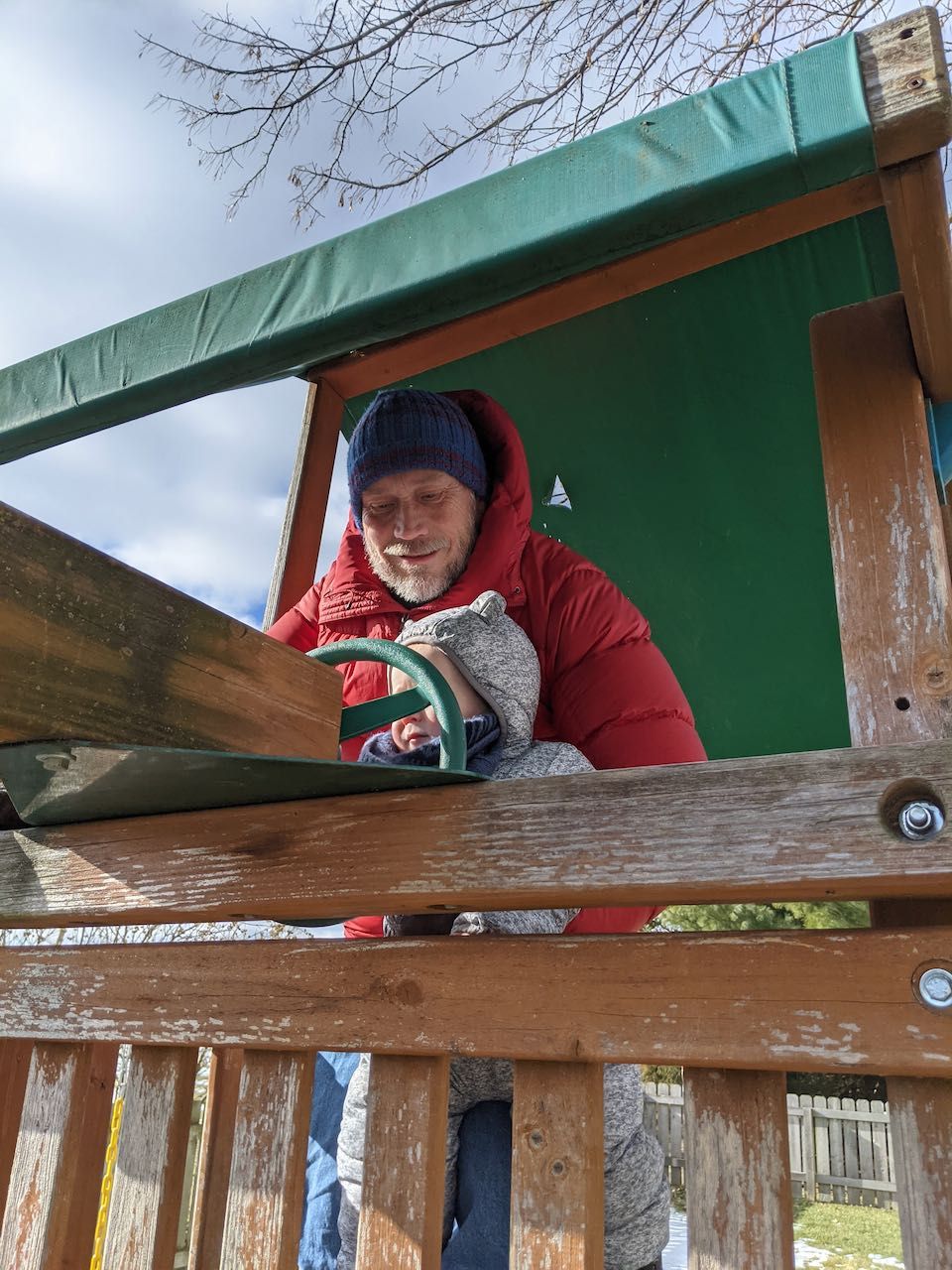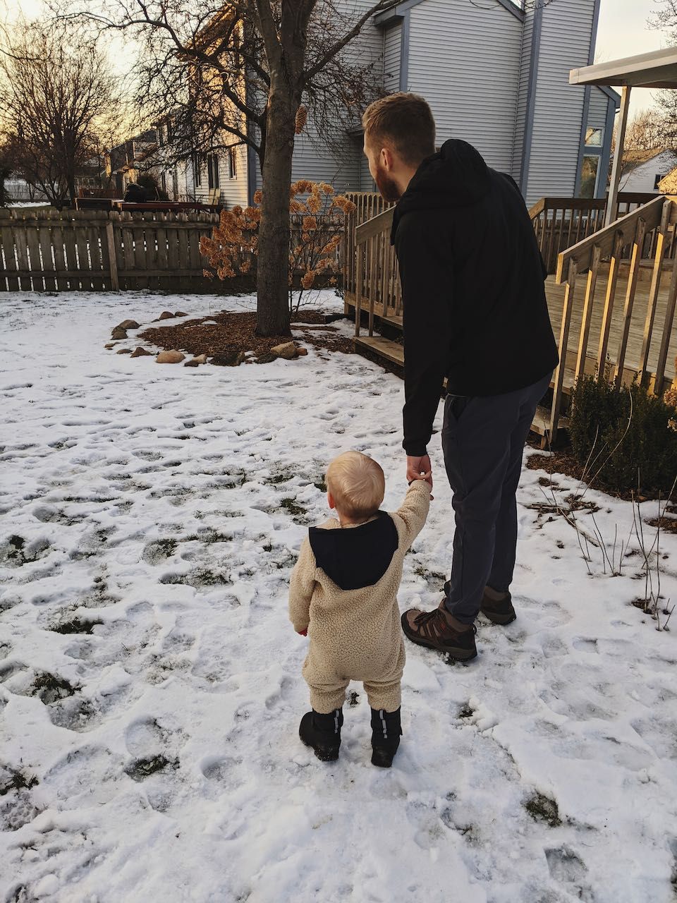 Christmas morning was quiet with just the three of us, eating bacon and eggs and drinking coffee, reading the Christmas story and exchanging gifts between us and a few for Cooper. To say Coop was enthusiastic about opening gifts in an understatement. After our morning, we ate lunch and then headed to my in-law's for an attempted nap for Coop (unsuccessful, if I'm remembering correctly). We exchanged gifts in the afternoon, and then made ham, mashed potatoes, and roasted asparagus. Nicholas and his dad spent a few hours assembling a swing for my MIL (a gift from her parents). We had peppermint coffee and grain-free coffee cake and cookies in the afternoon. I'm pretty sure A Christmas Story was playing in the background and we chased Cooper around. We took some photos on the assembled swing while it was in the garage because it was only around 15 degrees. And then we headed home, and video chatted with my family before Cooper went to bed. Such a full and lovely two days.