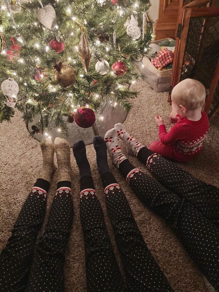 We had two Christmas celebrations, one with each of our families. On Christmas Eve and Christmas Day, we celebrated with Nicholas' family. My SIL gave all the girls matching pjs (organic cotton and so comfy) so we wore them on Christmas Eve. We watched online Christmas Eve service, enjoyed a dinner of biscuits and gravy, and opened stockings and played cards. We drove home with the smallest snowflakes falling.