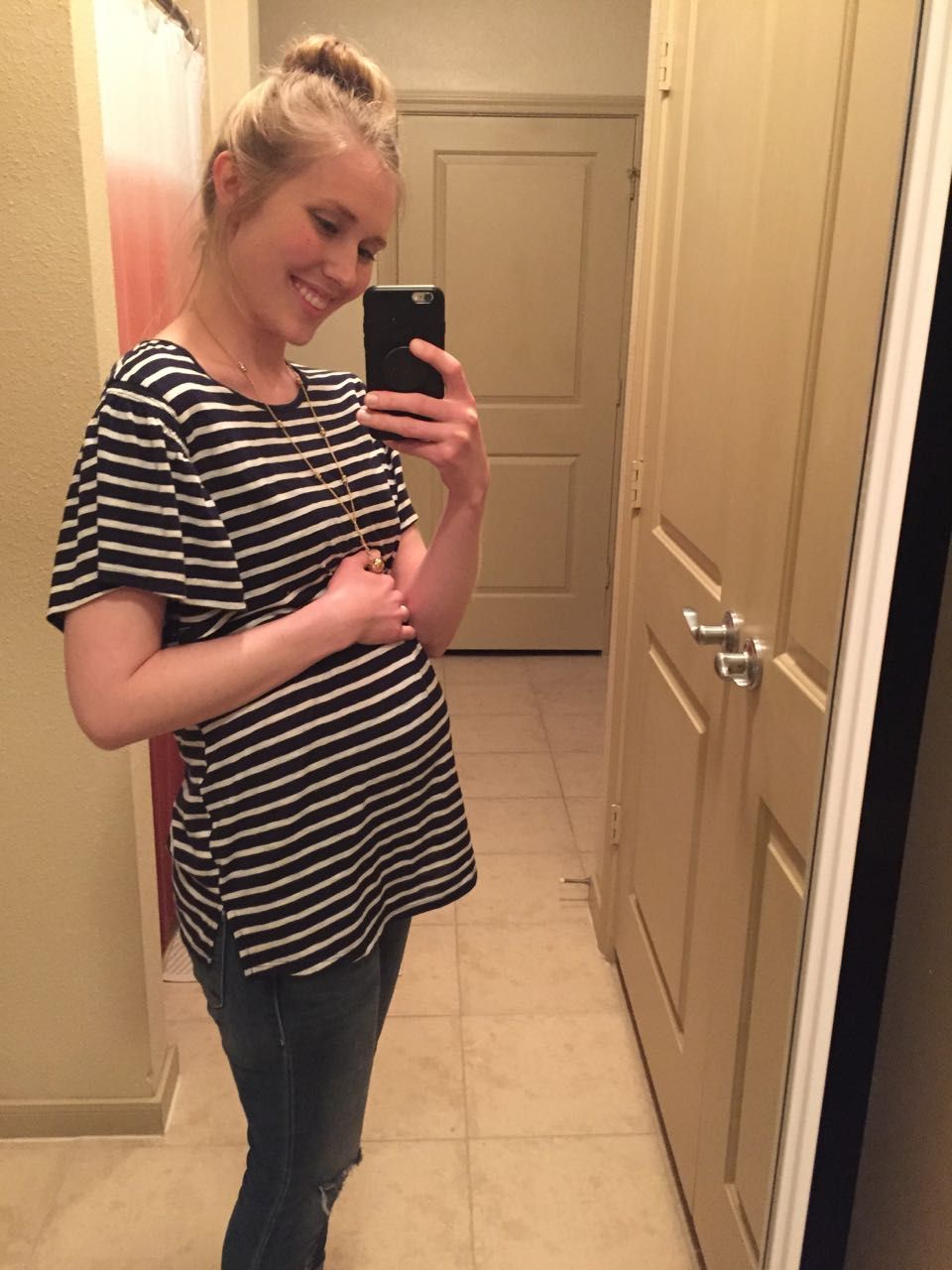 - Finding that fewer and fewer regular clothes fit over the bump (or, they technically fit, but aren't flattering ;)
