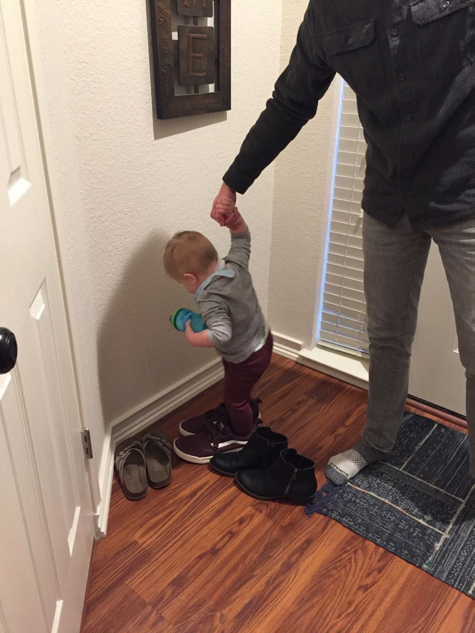 - Babysitting our little buddy, Sawyer, and watching him try on Nicholas' shoes