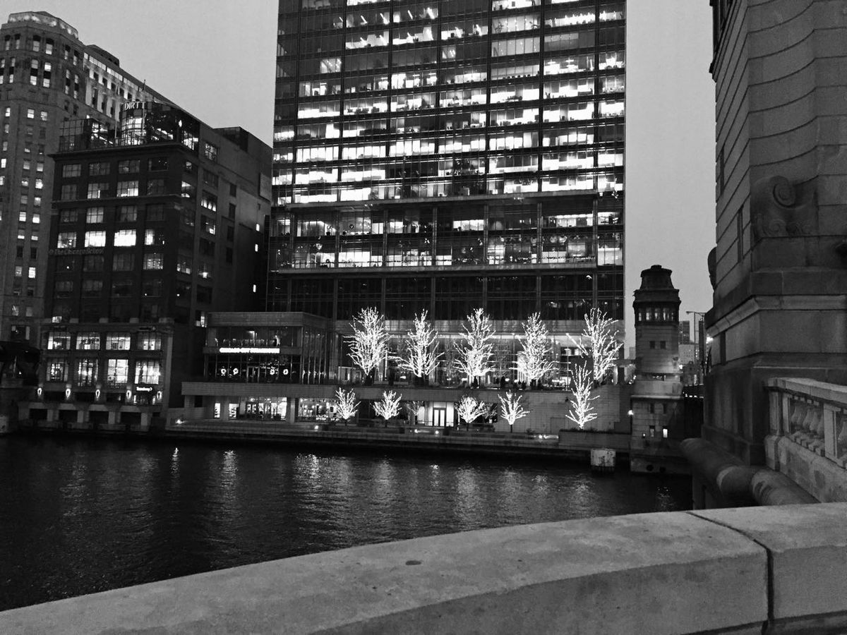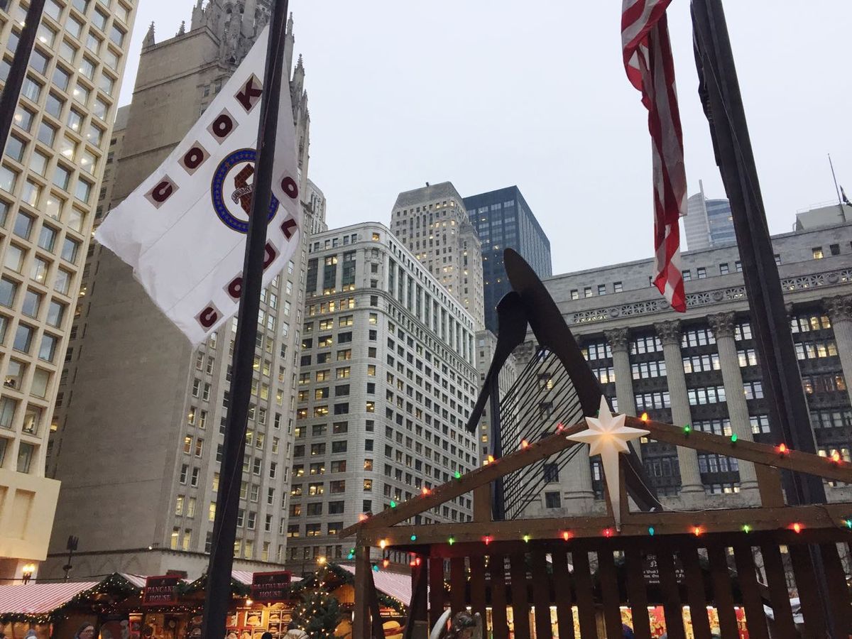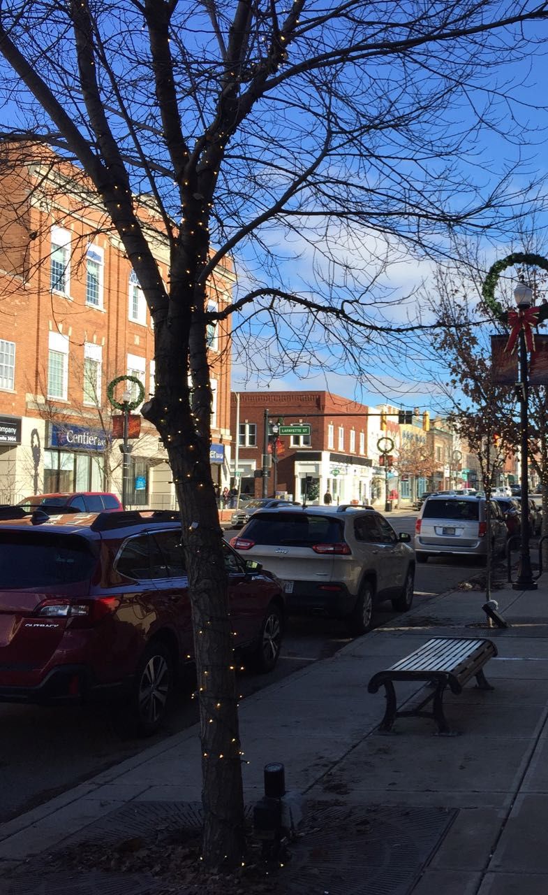 - downtown Chicago and downtown Valparaiso decorated for Christmas