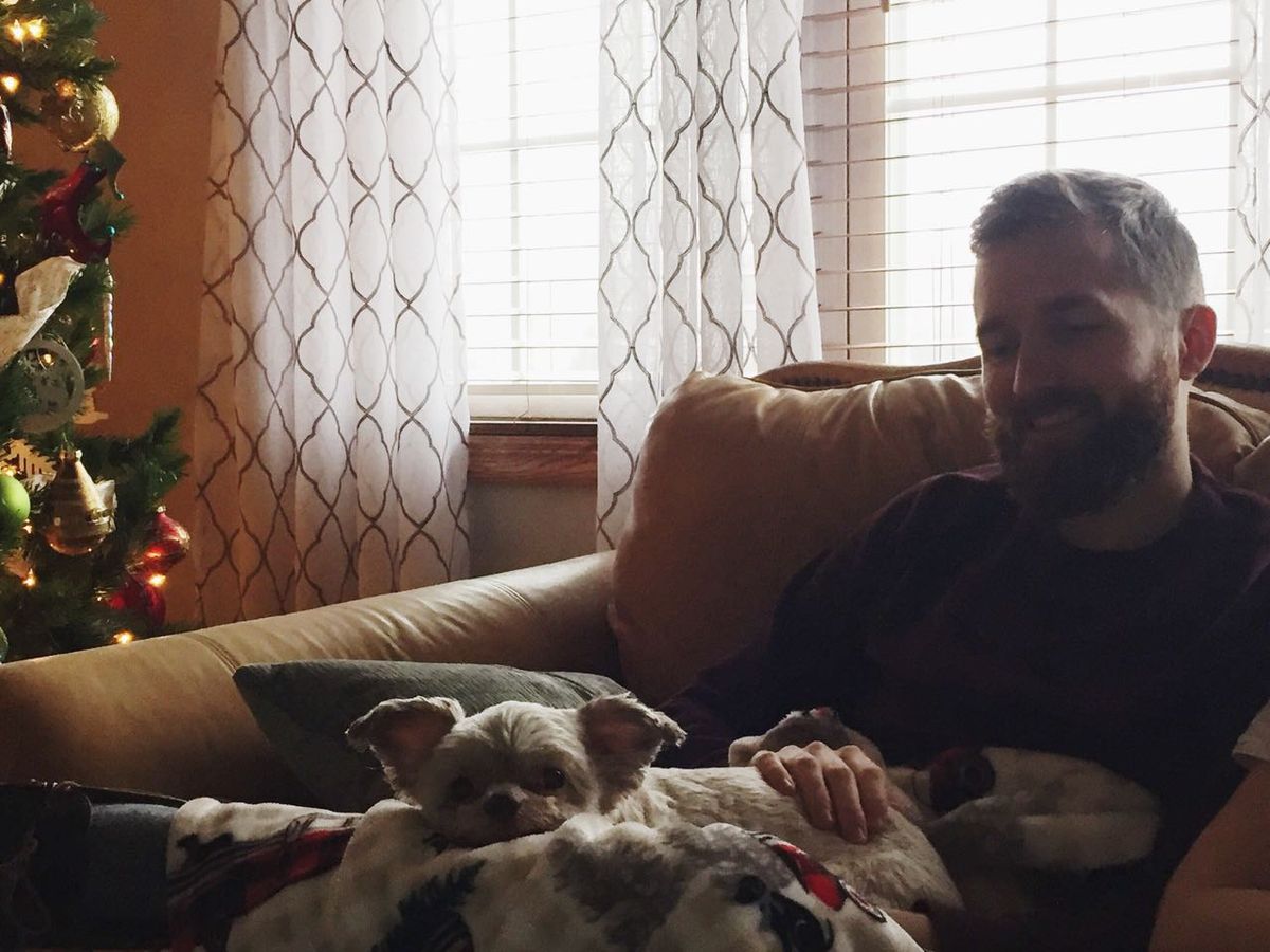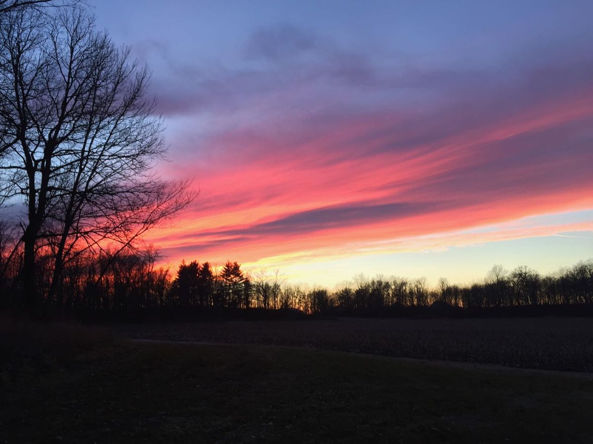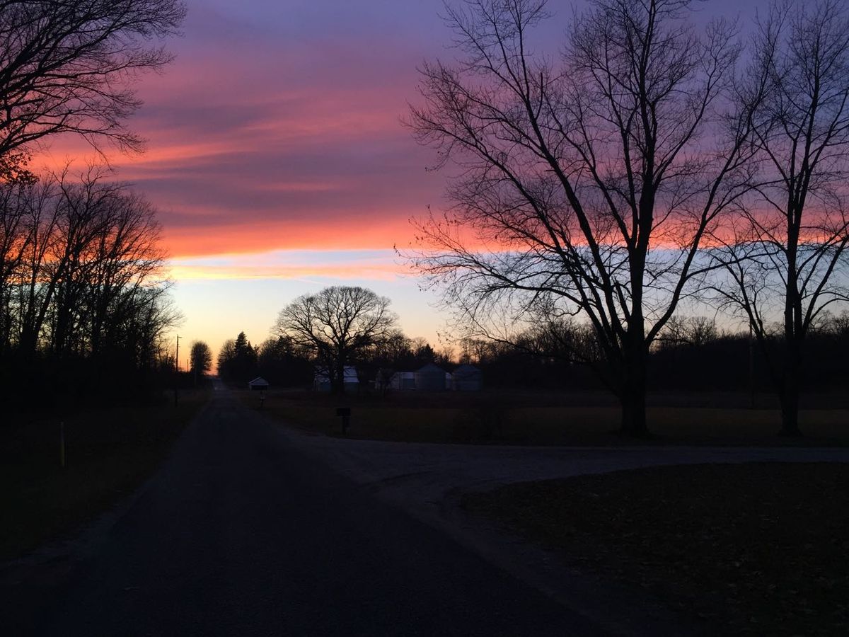 The following morning, we woke up and I wrapped Christmas gifts with Nicholas and my sister-in-law, Katelyn, since we planned to exchange our early Christmas gifts later that evening. We watched Christmas with the Kranks and took turns holding a dog that really wanted to be on somebody's lap. That afternoon, we drove to Grandpa DeVries' home, and it's such a nice drive. We had afternoon coffee and snacks, and saw Grandpa and aunts and uncles we hadn't seen in over two years (far too long, my goodness)! The sky boasted the most beautiful sunset and Nicholas, Katelyn, and I snuck the dogs out for a quick off-leash walk for some fresh air and to get a better look at the sky. We drove home after dark, looking at Christmas lights, and feeling sleepy in the car.