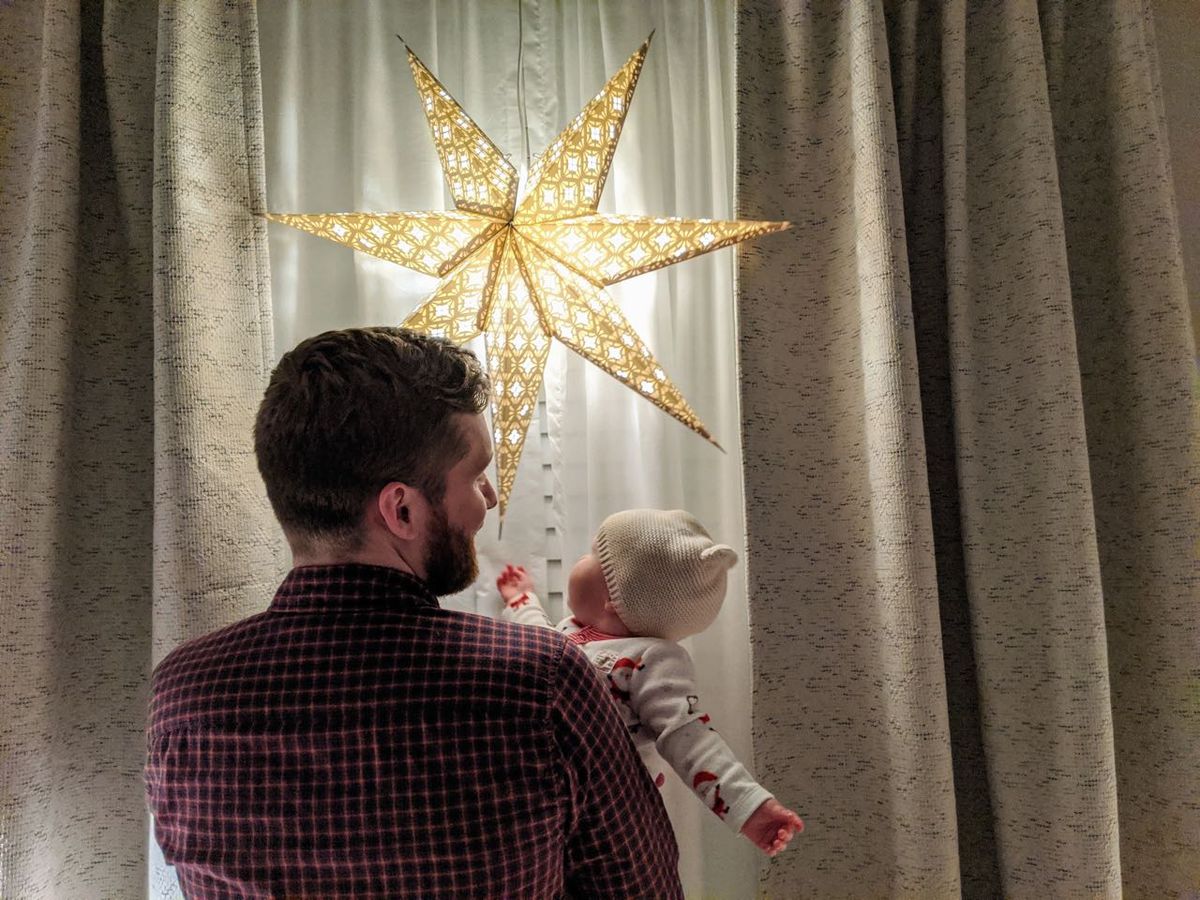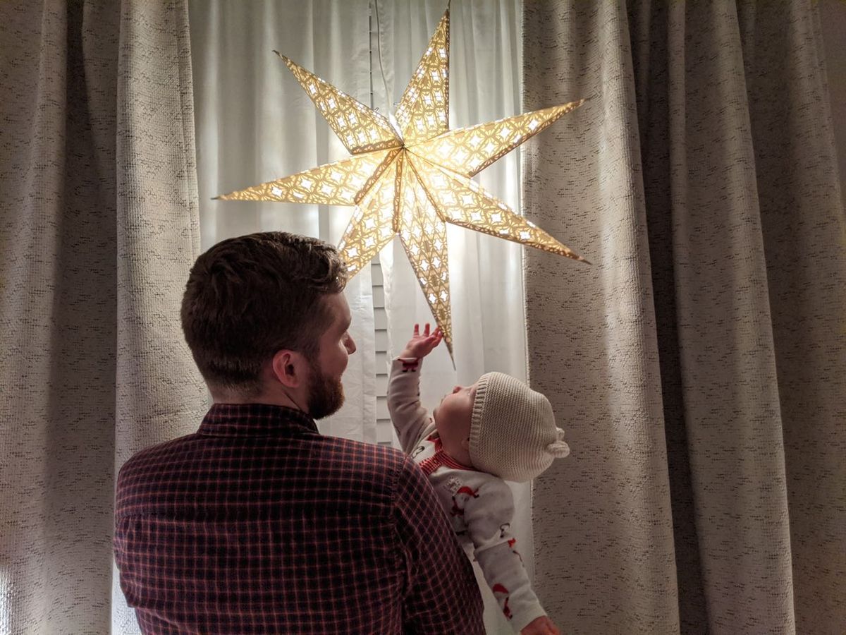 Nicholas and I headed back a little early so I could prepare a quick soup in the instant pot and so we could allow for some downtime for Cooper before bed. He is utterly fascinated by all the Christmas decor, especially the tree and the Christmas star we have hanging in our bedroom window. The photos of my boys by the star are now some of my most favorite photos ever. My family rejoined us, and after we ate supper and the baby was asleep, we all sat by the tree to talk and I flipped through some children's library books my mom brought.