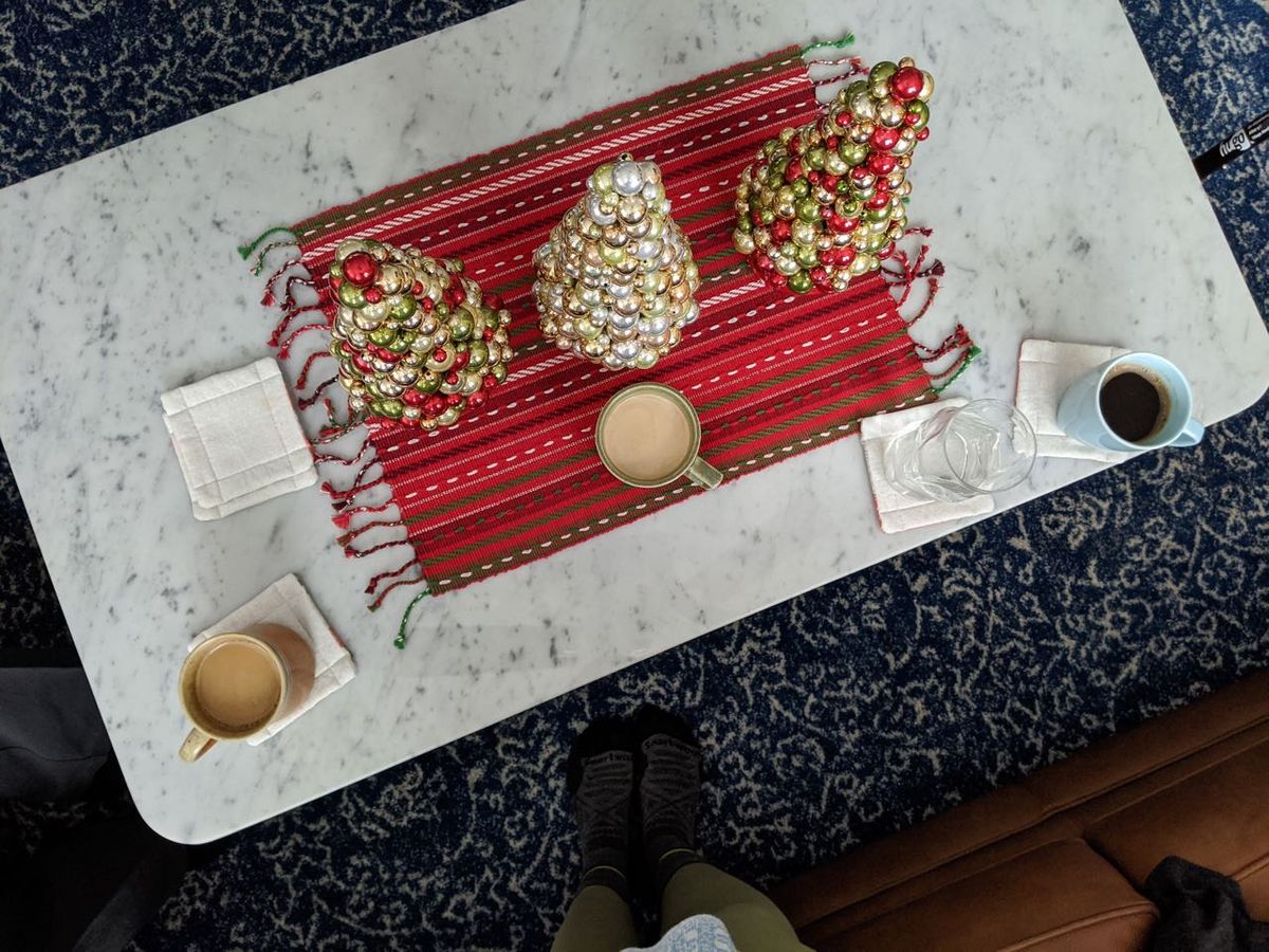 - Receiving thoughtful gifts, feeling so very loved (silk pillowcases, books, yarn; a quilted runner and tree skirt, and a fabric banner, made by my mom)