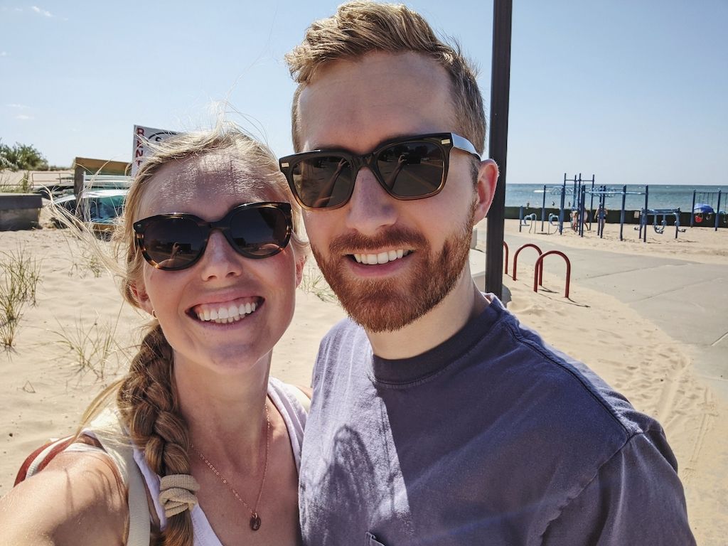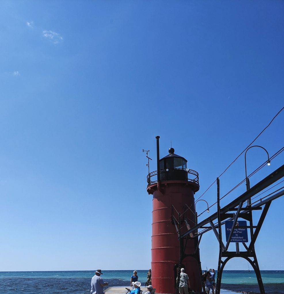 The hostess and waitress commented on our matching fanny packs, and smiled at the little wiggly boy who really didn't want to stay in his seat on the patio. After lunch, we walked back down to the water, out on the pier to see the (small) lighthouse and the waves (it was a choppy day!) and then for some playtime in the sand.