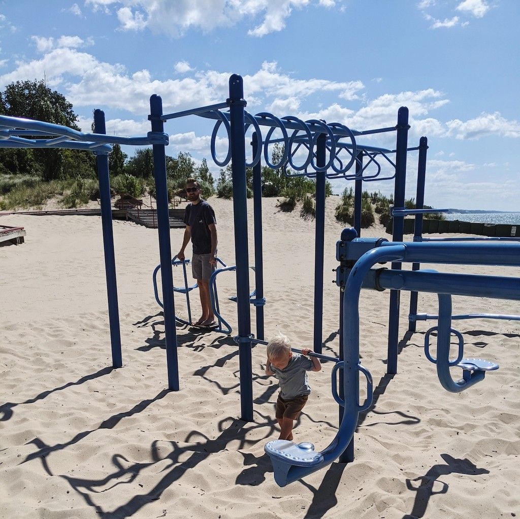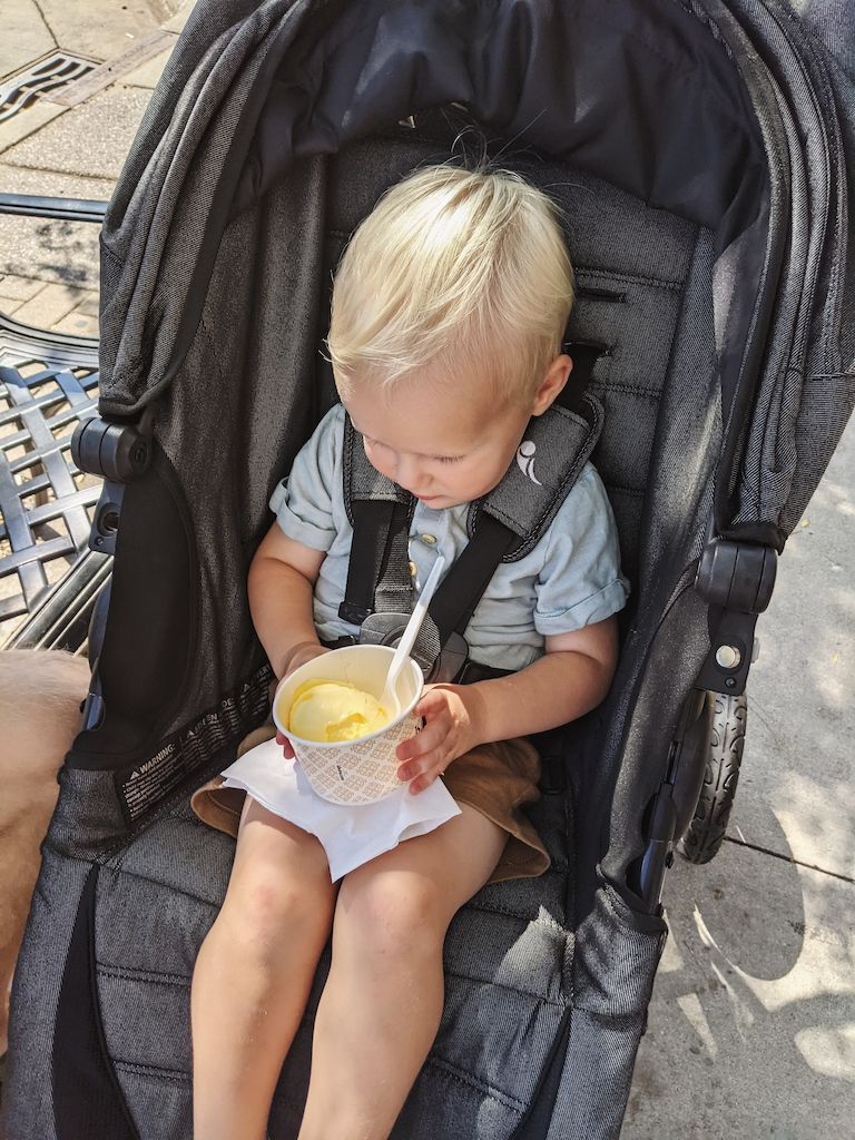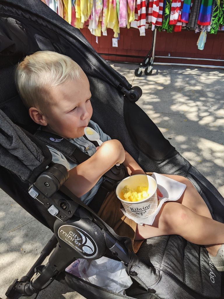 There is a playground on the beach, and all three of us enjoyed the feel of barefeet in sand, Lake breezes on our faces, and sunshine. We walked through the waterside neighborhood, Cooper had his first taste of ice cream (sorbetto, techinically) from Kilwin's. He did need to be convinced to taste it, and then he enjoyed it so much he cried when it was gone.
