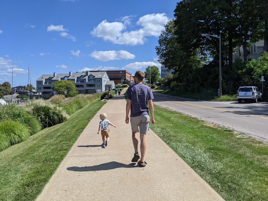 Once we arrived, we parked the truck, and then walked around the quaint downtown, browsing in a few shops here and there, and eventually making our way down to the marina and the big attraction if you're a toddler boy: BOATS. So many boats, and all so fascinating to Cooper. We meandered, as you do with a toddler, and then looped back for some burgers on the patio of a restaurant for lunch.
