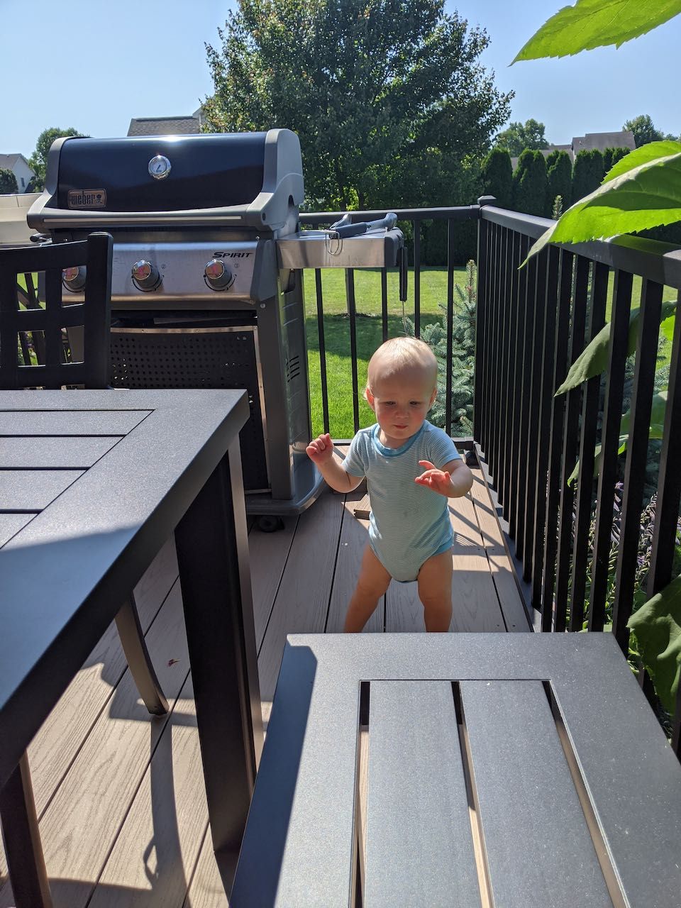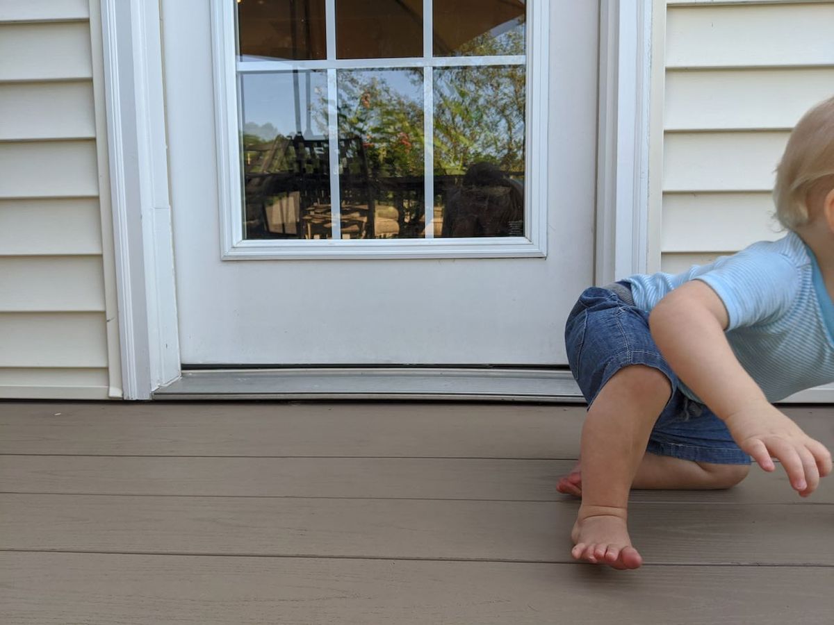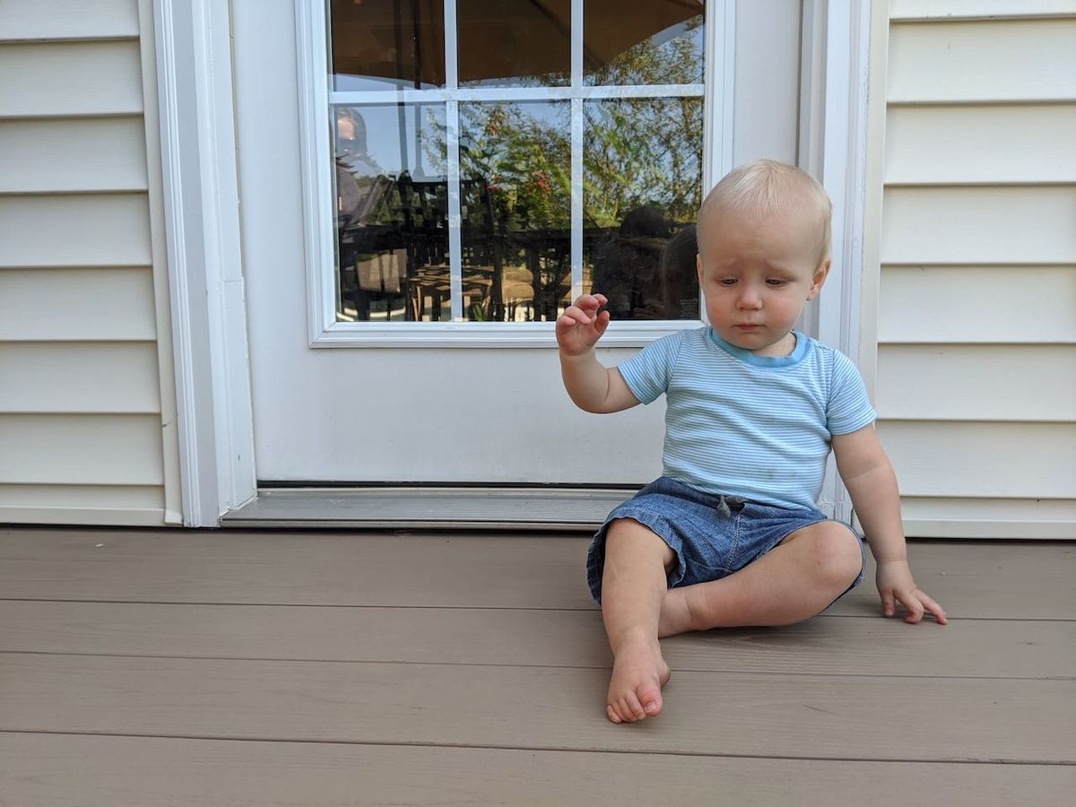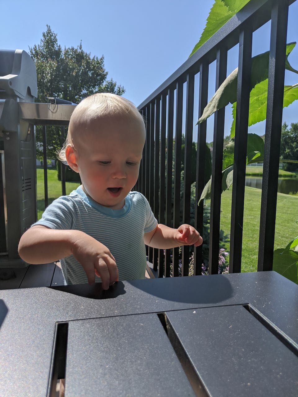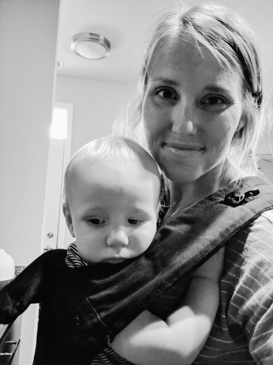 Saturday morning, we headed over to my in-laws' after breakfast and walked in to see that my SIL had made French press coffee. We sat on the porch, Cooper got bacon grease on his onesie, and he roamed and tried (successfully, at times) to eat potted flowers. We admired my MIL's sunflowers, growing ever taller, enjoyed the cool morning breeze, and just chatted. We went home just before lunch and the rest of the day was low-key, spent at home with fika and some knitting and lots of playing with a certain little boy. I've been wearing him in the carrier on days when he needs extra mama time, and reminding myself to cherish it. And that evening, when he was wild and roaming once again, his personal goals were to attempt to open the window in his room and to stand on tip toes to peek out. He was successful only on the latter count. ;)