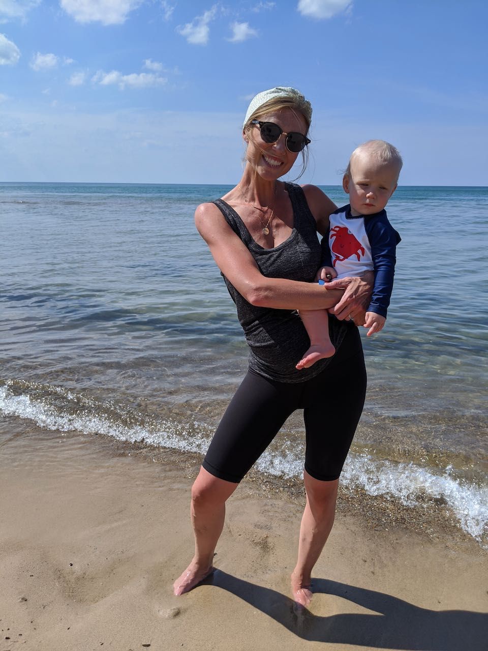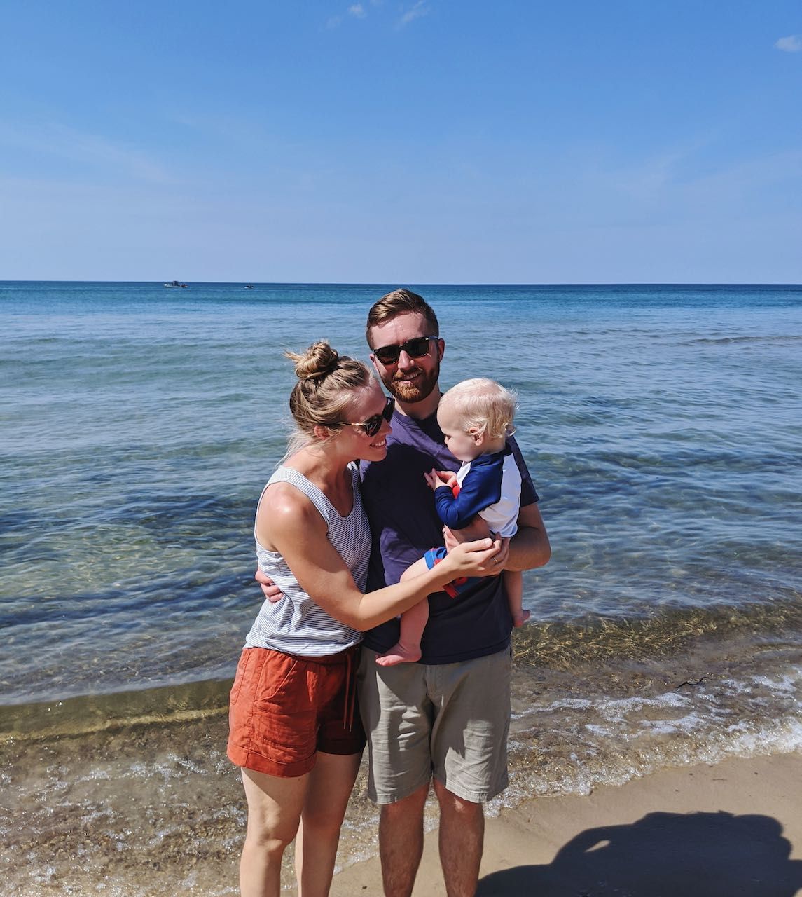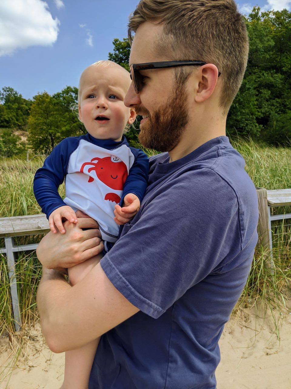 After driving for a time in queue, we parked and headed straight for the water, all four adults taking our chacos off to feel the water and sand on our feet. We carried Cooper, taking turns. We walked along the water to a more open area of the beach, then let Cooper play in the water, doing our best to minimize how much sand he was eating. Casey took him out a little bit further and he loved the water, even purposely splashing his face in multiple times. We walked some more, chatted about their growing family(!), snapped a few photos, and waded in the water which actually felt warm. And on the walk back, we took turns carrying a very sleepy Cooper. He rested his head on Lauren's shoulder and gripped a rock in his tiny hand all the way back to the truck, and for the entire drive home. Oh to see a Great Lake through a little boy's eyes, and to find such joy from a rock.
